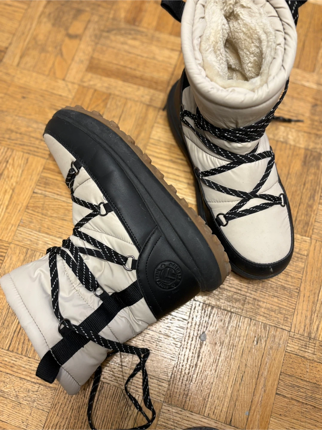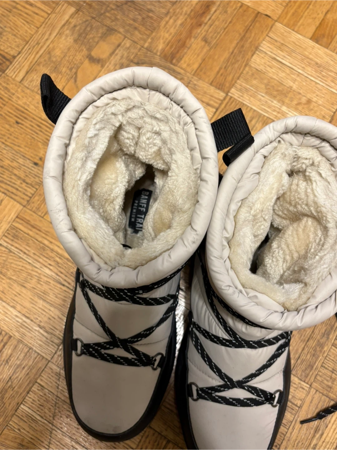 Keep your feet warm and stylish with these Banff Trail Premium winter boots! They're in great condition and ready for the Canadian winter. The boots feature a black and white design with a lace-up front. Perfect for snowy days and outdoor adventures.