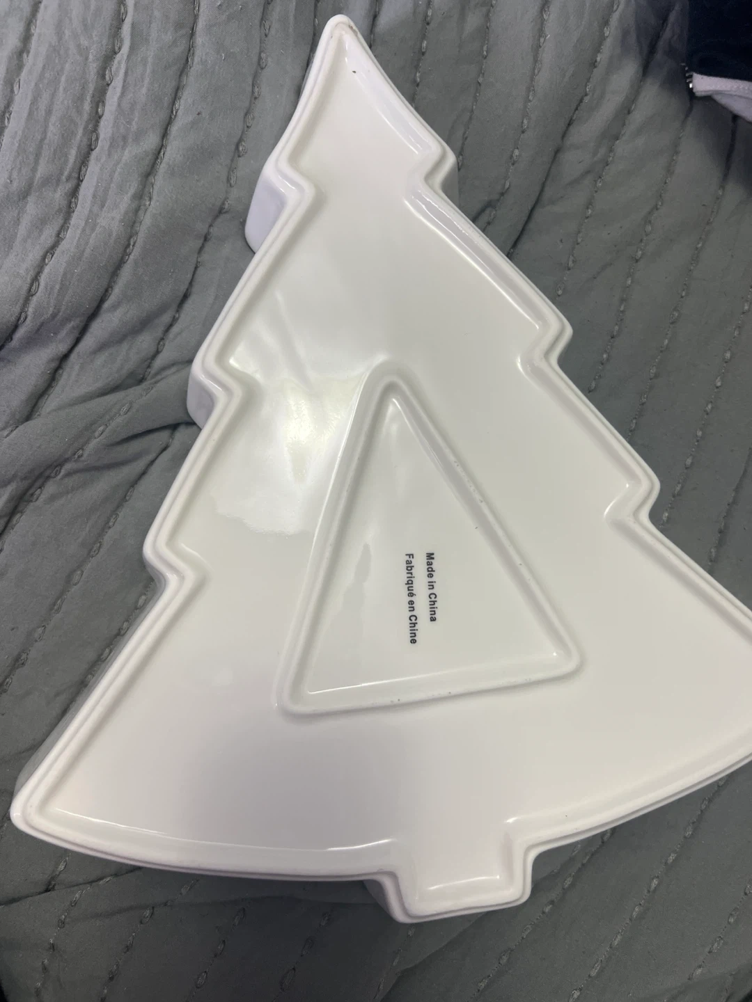 Selling a lovely Chefology pitcher and tree plate set. Both are white and in great condition. The pitcher is dishwasher and microwave safe. Perfect for your holiday gatherings! Both for $10