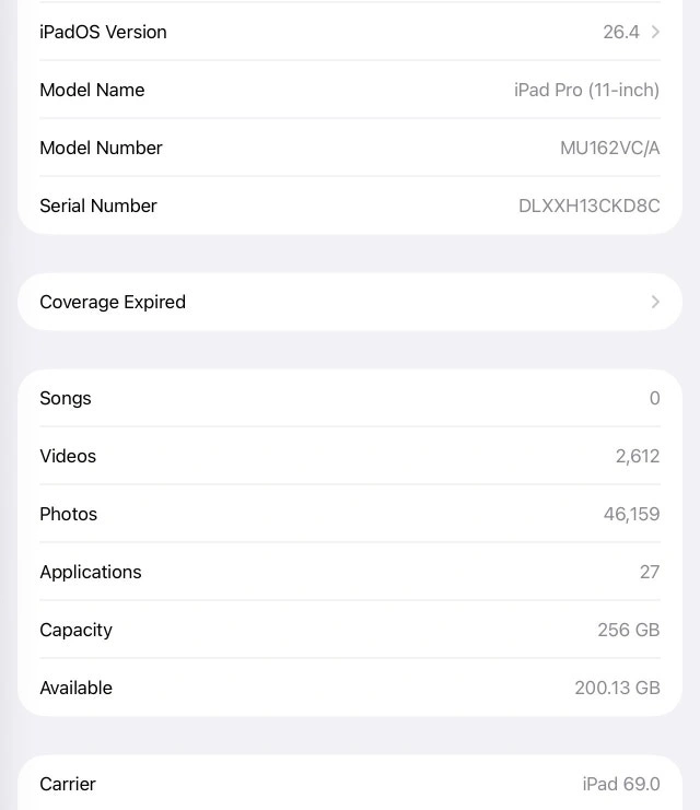 This is an 11-inch iPad Pro with 256GB of storage and cellular connectivity, in used condition. There are some minor scratches and dents along the edges, which I have included in the photos. This iPad has been well taken care of and functions perfectly. Screen Size: 11-inch, CPU: A12X Bionic, Storage: 256GB, Connectivity: Cellular.