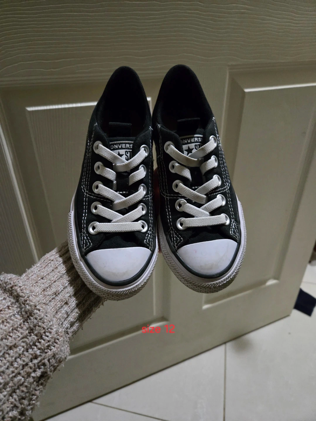 Brand new, never worn. Classic Converse All Star sneakers in black. Lace-up closure with white laces. Canvas upper with rubber sole. Size 1.