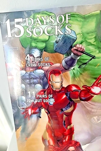 MARVEL 15 DAYS OF SOCKS MENS SHOE SIZE 6-12 4 PAIRS OF CREW SOCKS AND 11 PAIRS OF LOW CUT SOCKS MADE WITH 97% POLYESTER AND 3 % SPANDEX MACHINE WASHABLE Brand new.