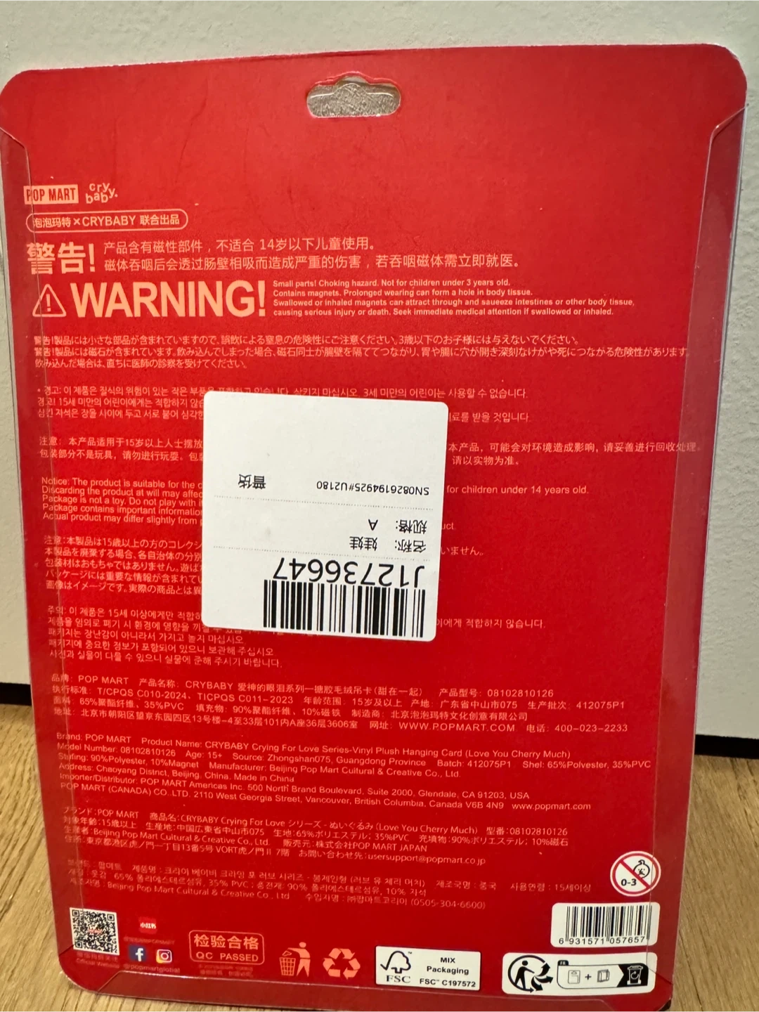Selling a super cute Pop Mart inspired Crybaby Crying Faux Love Vinyl Plush Hanging Card (Love You Cherry Much)! This adorable plush is brand new and still in its original packaging. It's a must-have for any Crybaby fan