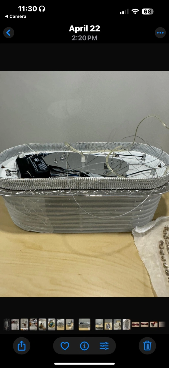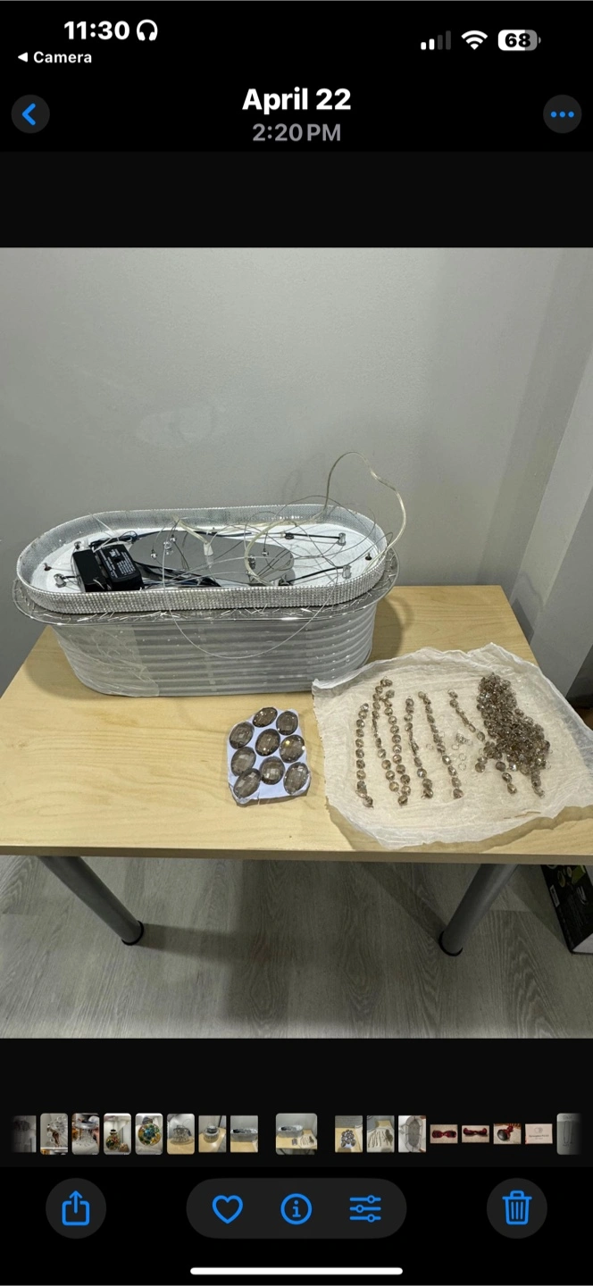 Selling a chandelier with crystals. It needs to be assembled. All the pieces are included. Perfect for adding a touch of elegance to any room
