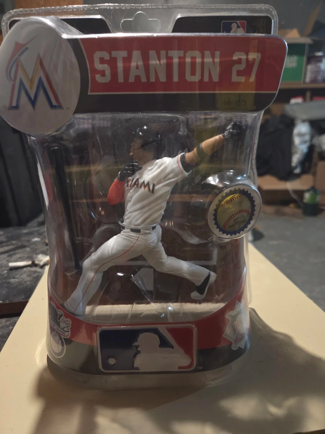 This is a Giancarlo Stanton 27 action figure. It comes in its original packaging. Great for any Miami Marlins fan!