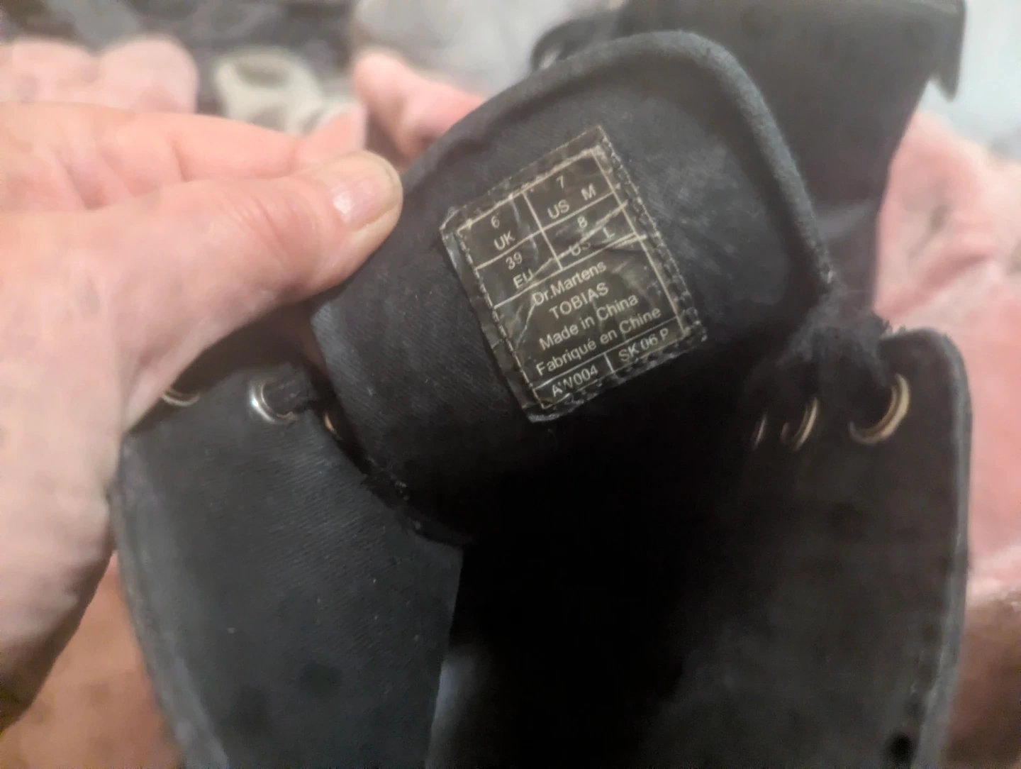 Dr. Martens Tobias boots in black leather. Women's US size 7, UK size 5, EU size 38. Made in China.