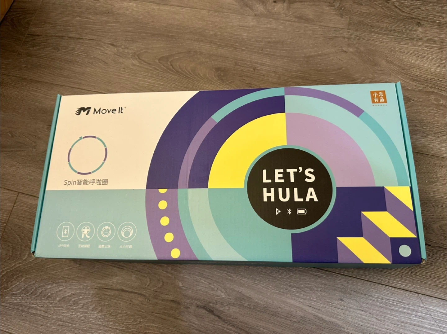This is a Move It smart hula hoop, branded "Let's Hula". It connects via Bluetooth and offers app synchronization, interactive courses, and keeps track of your repetitions. The size is adjustable.