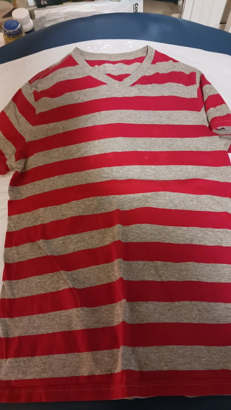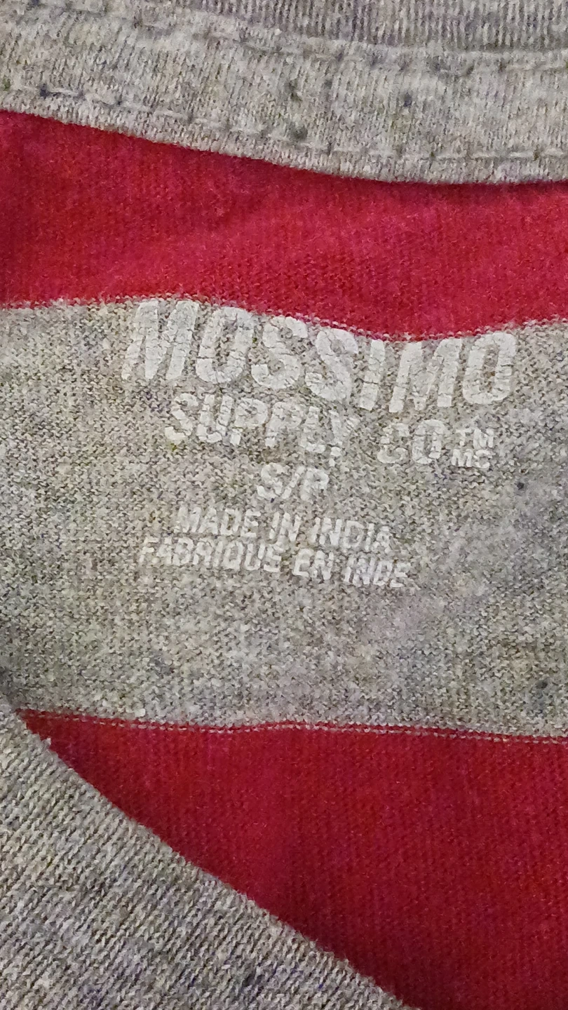 This is a Mossimo Supply Co. striped V-neck t-shirt. It's a size S/P. Made in India, this shirt's comfy for everyday wear. Loose fit! Barely worn!