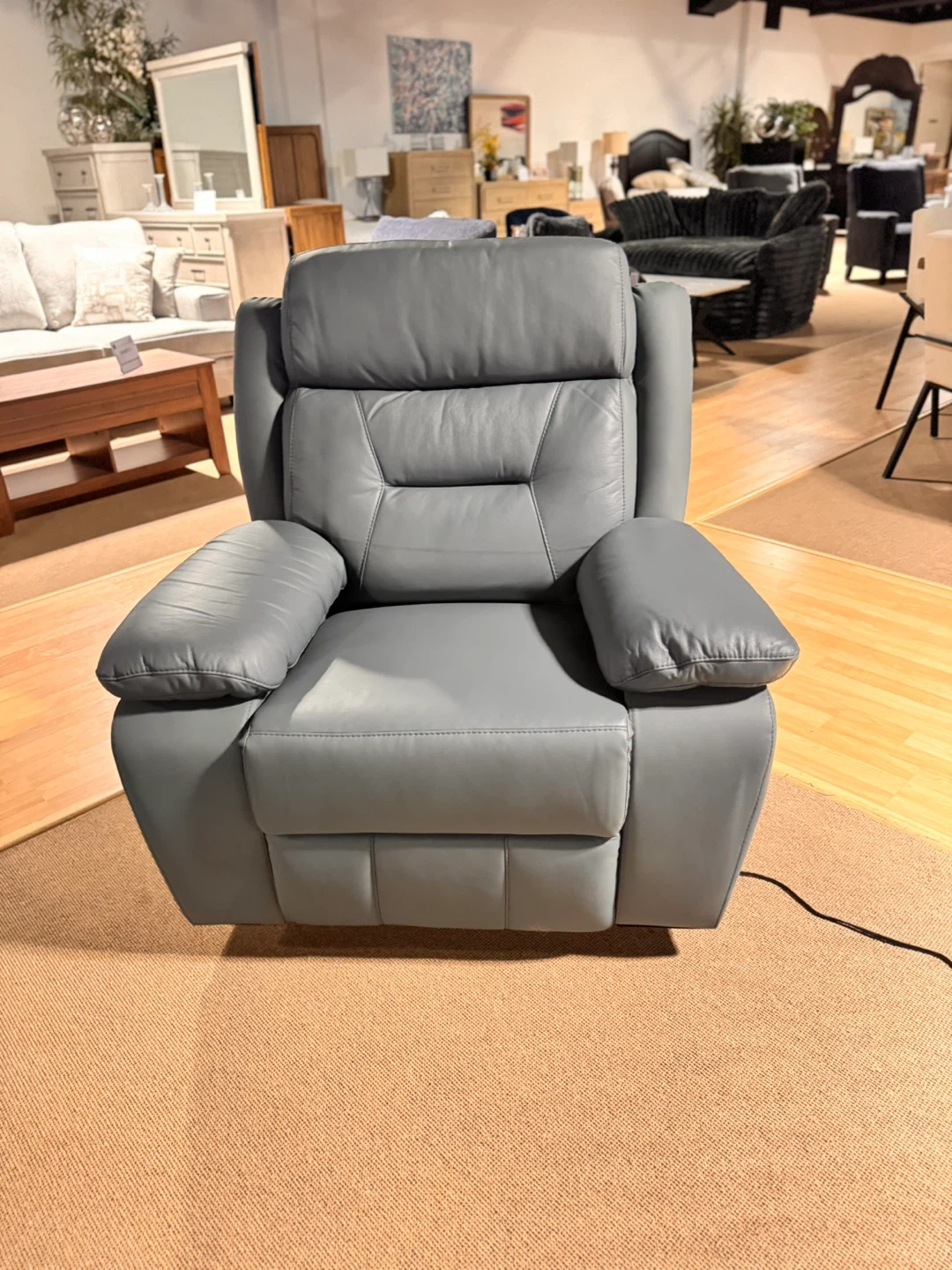 Grey Leather Recliner Armchair
