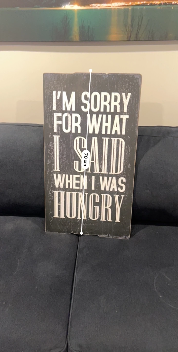 This rustic wooden sign features the humorous phrase "I'm sorry for what I said when I was hungry". It's made of wood and measures approximately 70 cm tall by 39 cm wide. It's a great conversational piece for your kitchen or dining area!
