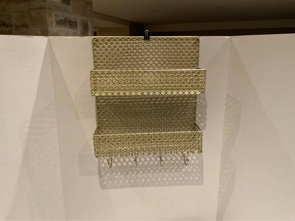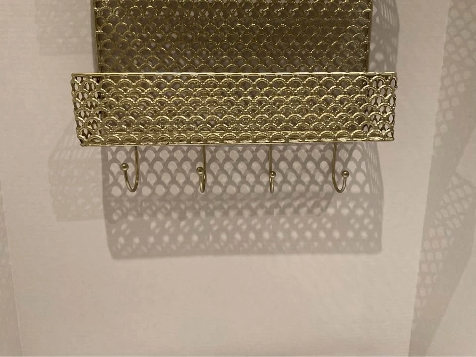 Gold Metal Wall Organizer With Hooks