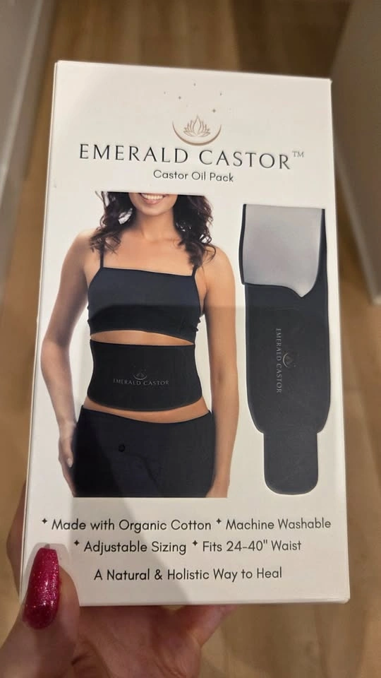 Experience the soothing power of Emerald Castor Oil Packs. With an ultra-soft organic cotton interior that provides a gentle touch to your abdomen. Adjustable sizing fits 24"-41" waist, 7" wide. The 100% neoprene exterior retains body heat and gently opens pores for absorption. Leak-proof design ensures mess-free application. Can help enhance circulation, ease inflammation, support better sleep, soothe IBS discomfort, and more. Enjoy happier and healthier well-being. Secure and snug fit adapts to any body type. Use the flexible, stretching fabric to adjust tightness and secure with the strong velcro closure. Machine washable, hang to dry.