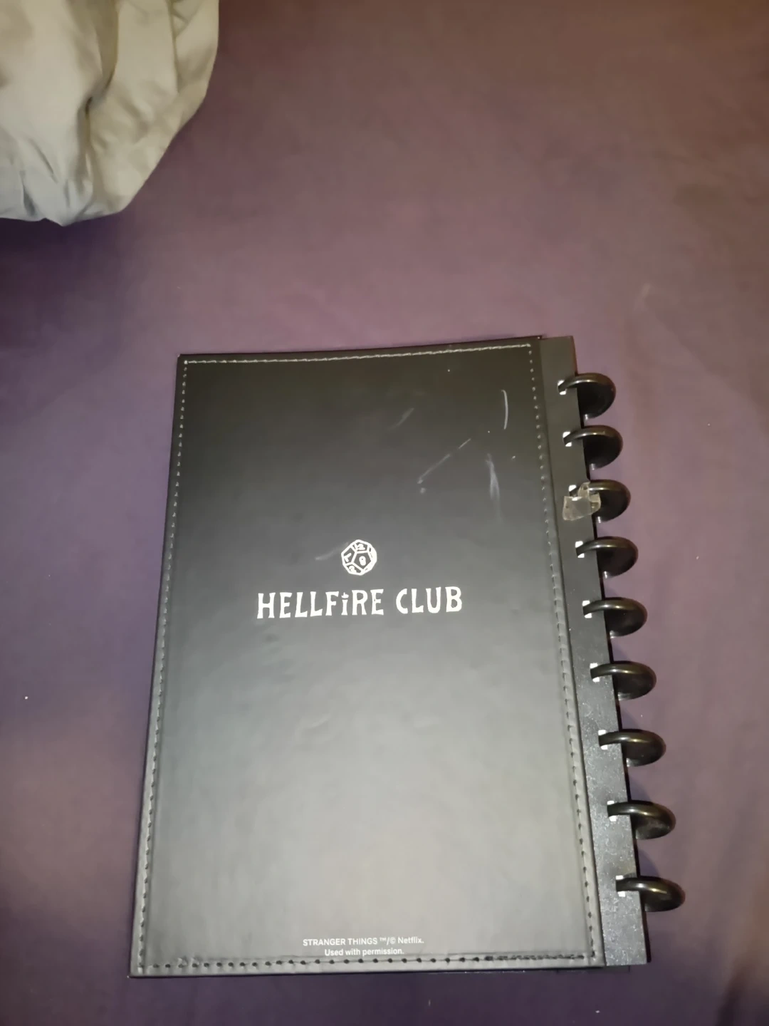 This Stranger Things notebook features the iconic Hellfire Club logo. It's a spiral-bound planner or notebook with a black cover. Perfect for fans of the show to jot down notes or plan their adventures!
