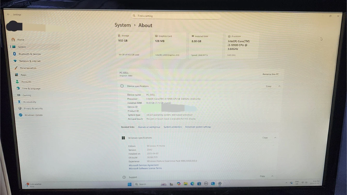 - Intel(R) Core(TM) i3-10100 CPU @ 3.60GHz