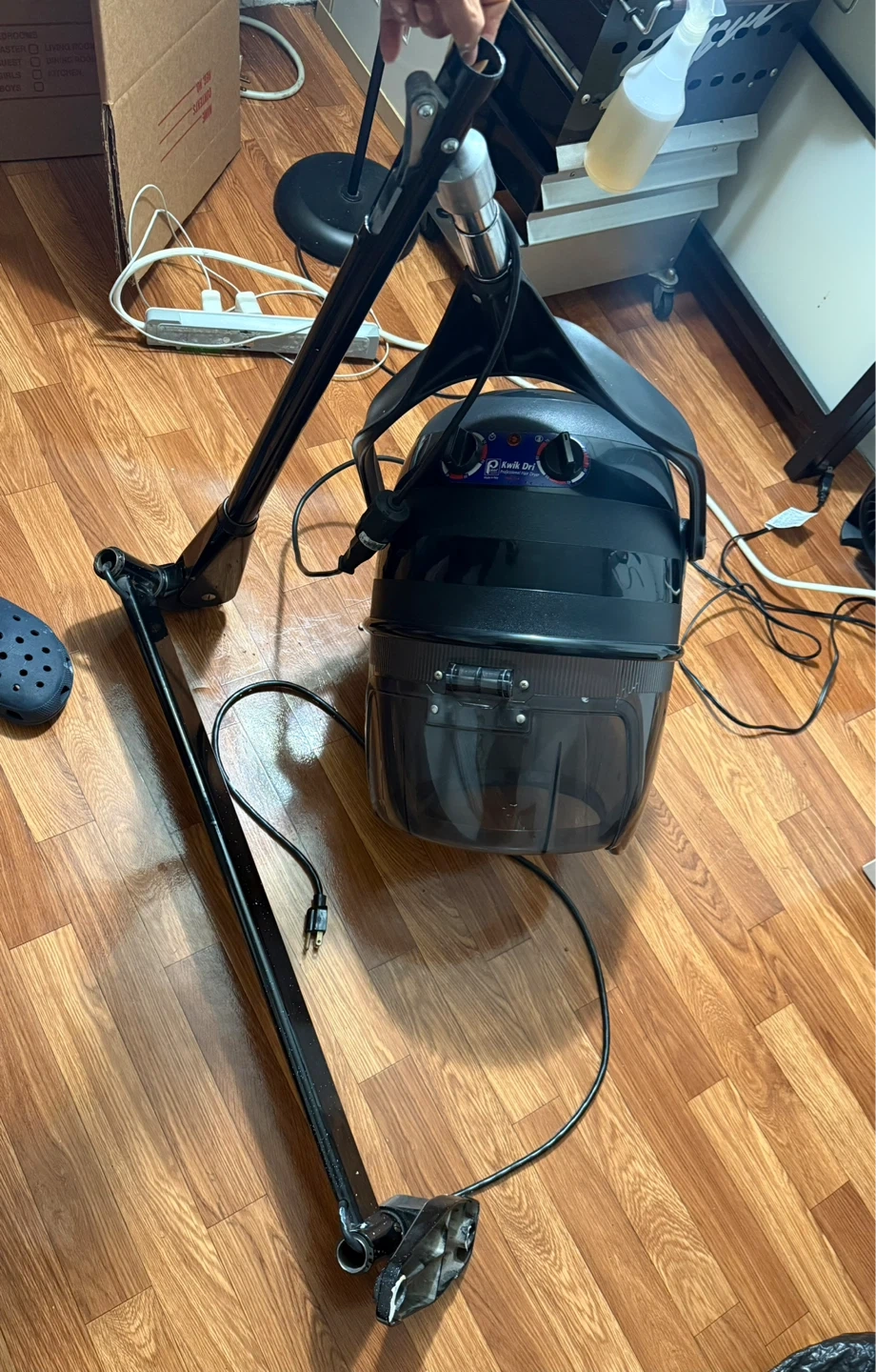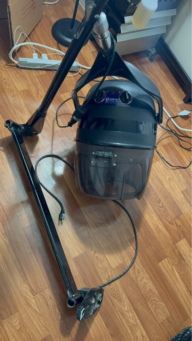 This is a professional salon hood dryer. It features adjustable temperature settings and a timer. The adjustable stand makes it easy to position. Great for salon use!
