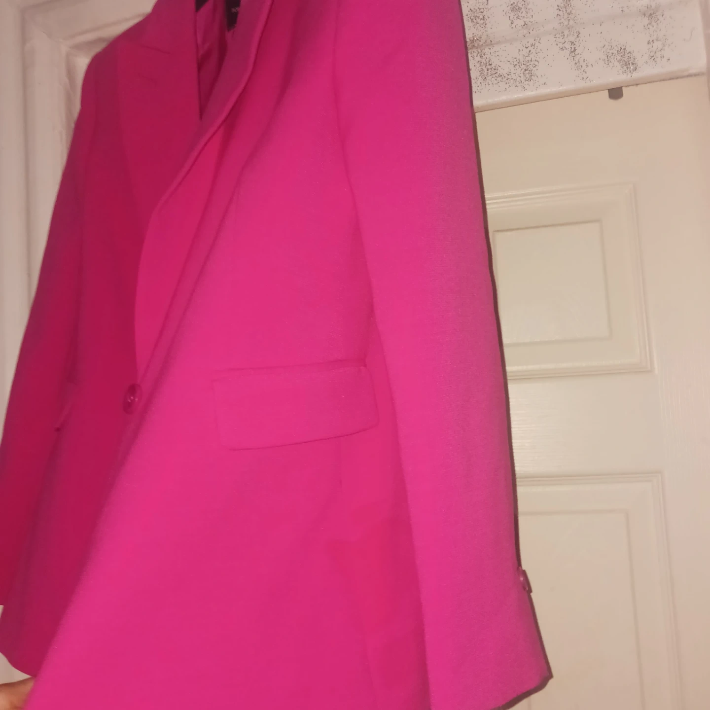 Selling a brand new BCBGMAXAZRIA blazer in a vibrant hot pink color! This stylish blazer is a size 4 and still has the original tag attached. The tag shows it originally retailed for $298. It's a beautiful piece to add to your wardrobe!