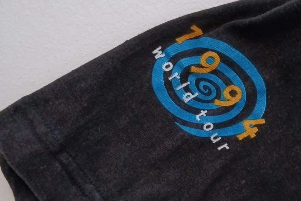 Hard-to-find authentic vintage 1994 Spin Doctors "Turn It Upside Down" world tour shirt with front and sleeve print in great used shape. This is an original and not a recent reprint. 100% heavy-weight cotton. No holes or rips, size extra large (measurements shown in photo). Tag is faded, but reads: Marine Drive. Available at a safe, public meet-up in downtown Kitchener.