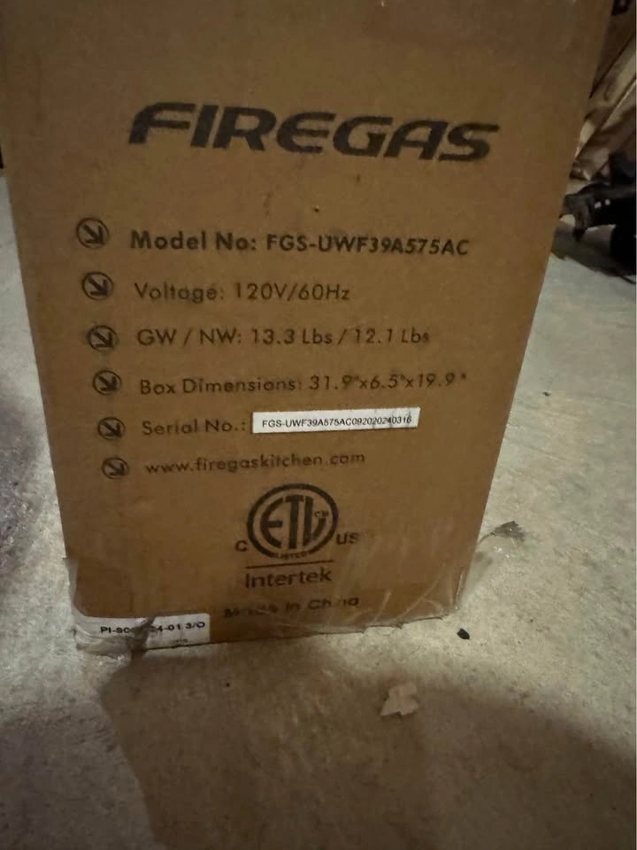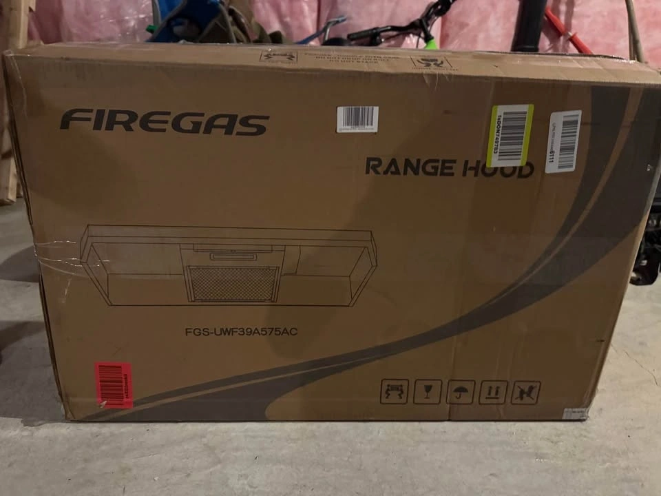 FIREGAS OVER THE RANGE HOOD UWF39A575. This 30-inch under cabinet range hood quickly removes grease and smoke from your kitchen. Its low profile design is great for smaller kitchens and condos. The hood is hard-wired (no plug included). Made from high-quality steel for excellent resistance to corrosion and rust. Features a multi-layer aluminum filter to efficiently trap grease and oil. Simple rocker button controls allow for easy operation with Low/High speed settings. The 2W LED light provides ample brightness for cooking. Operates quietly, with noise levels under 57dB on high speed.