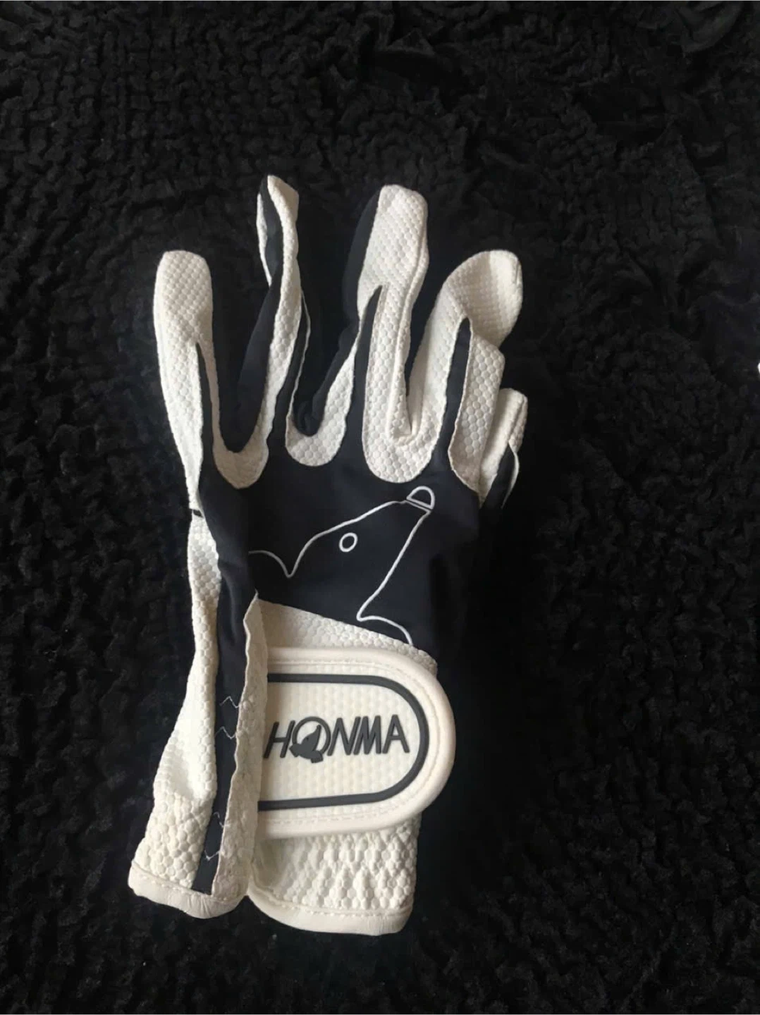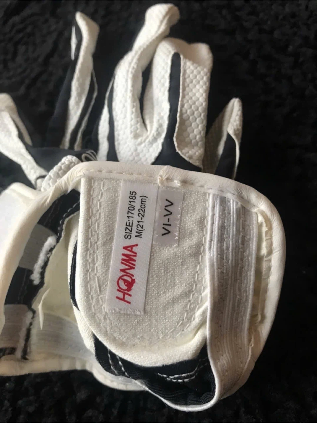 This is a white and black Honma golf glove SPEEDMONSTER. It's a women M size, fitting a left hand circumference of 21-22cm. Made for golfer.