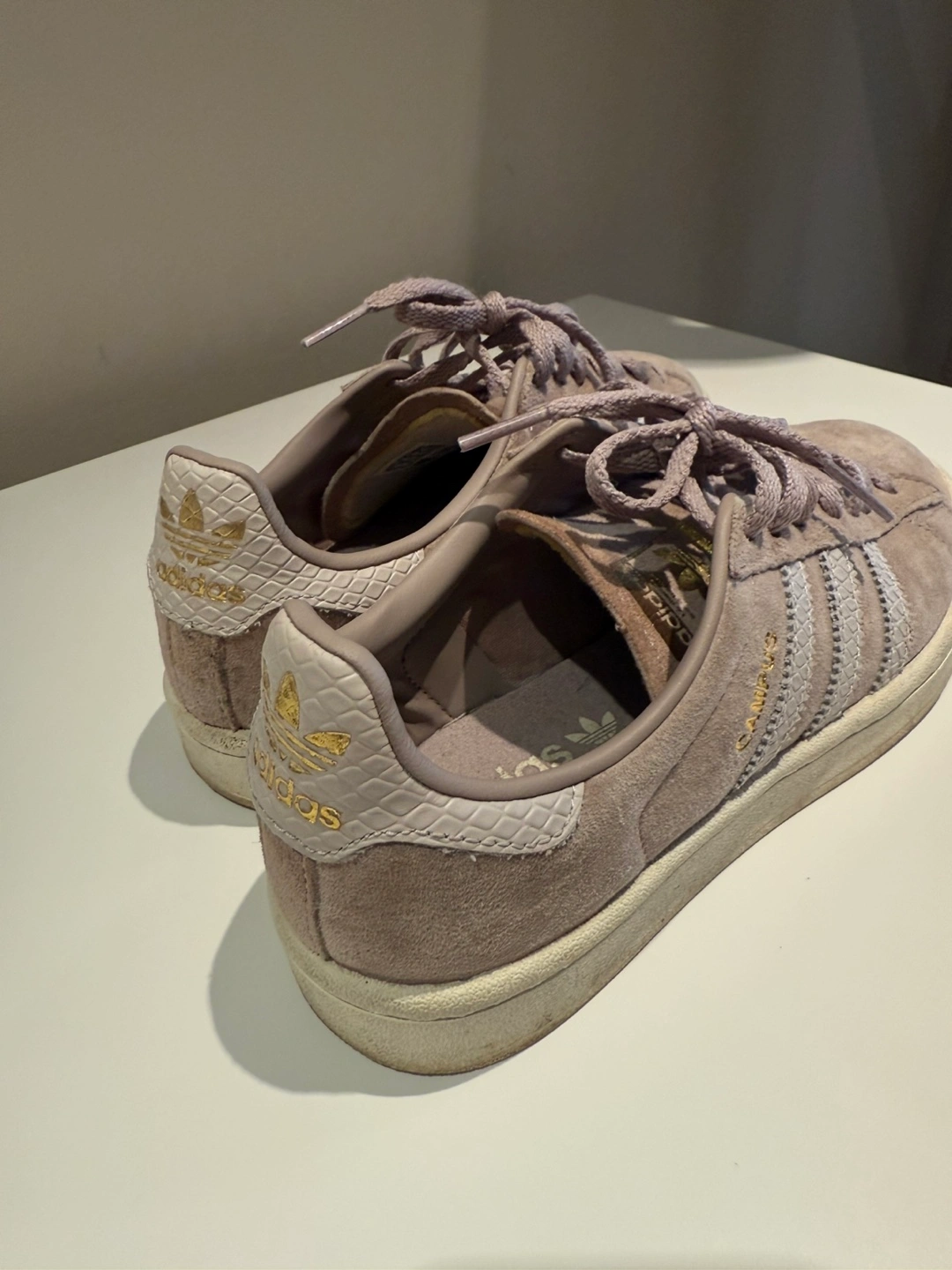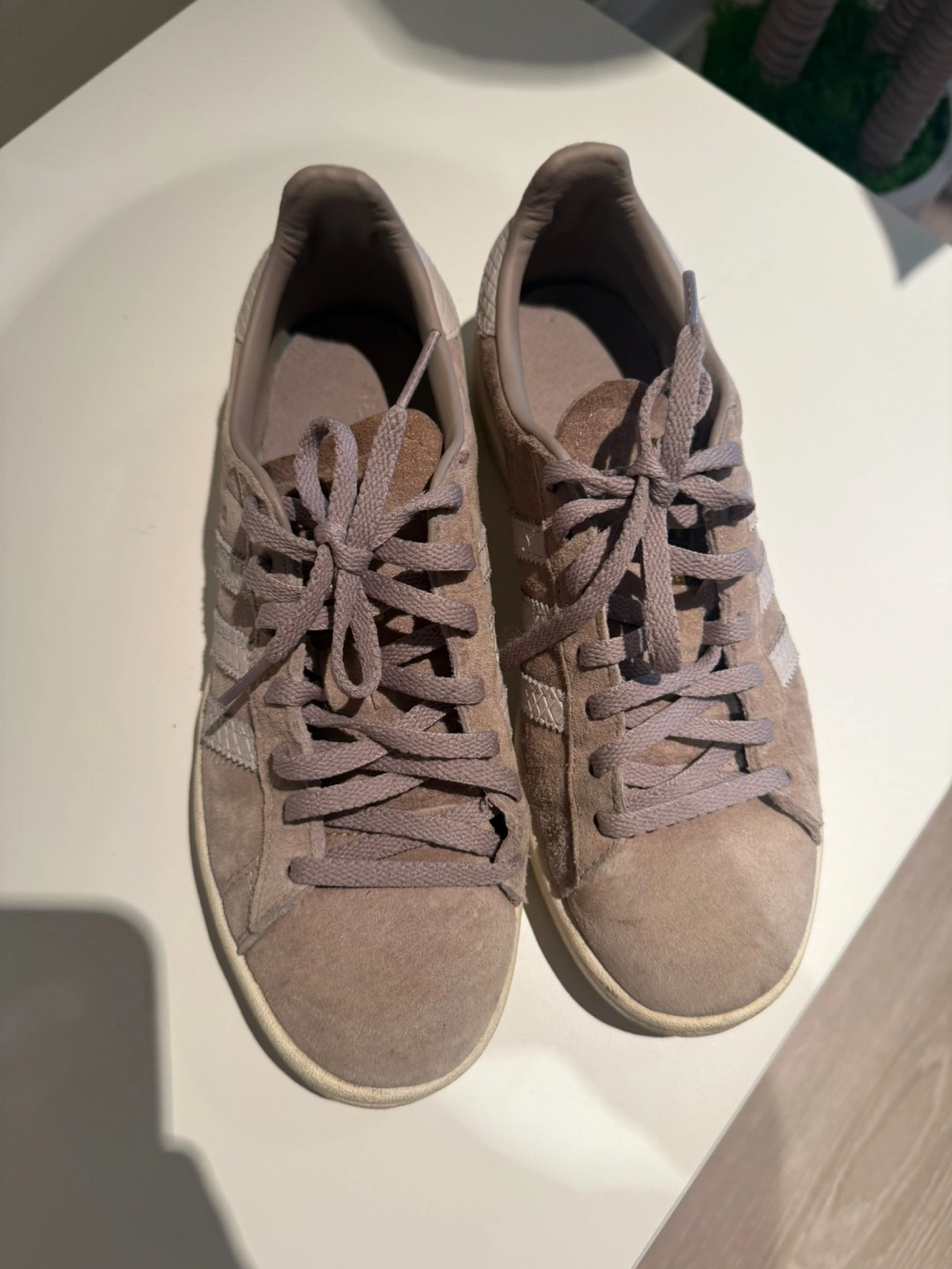 Selling a pair of Adidas Campus sneakers in a lovely neutral colour! These are in great condition and are a size 6. They feature the classic three stripes and a suede upper. Perfect for everyday wear!