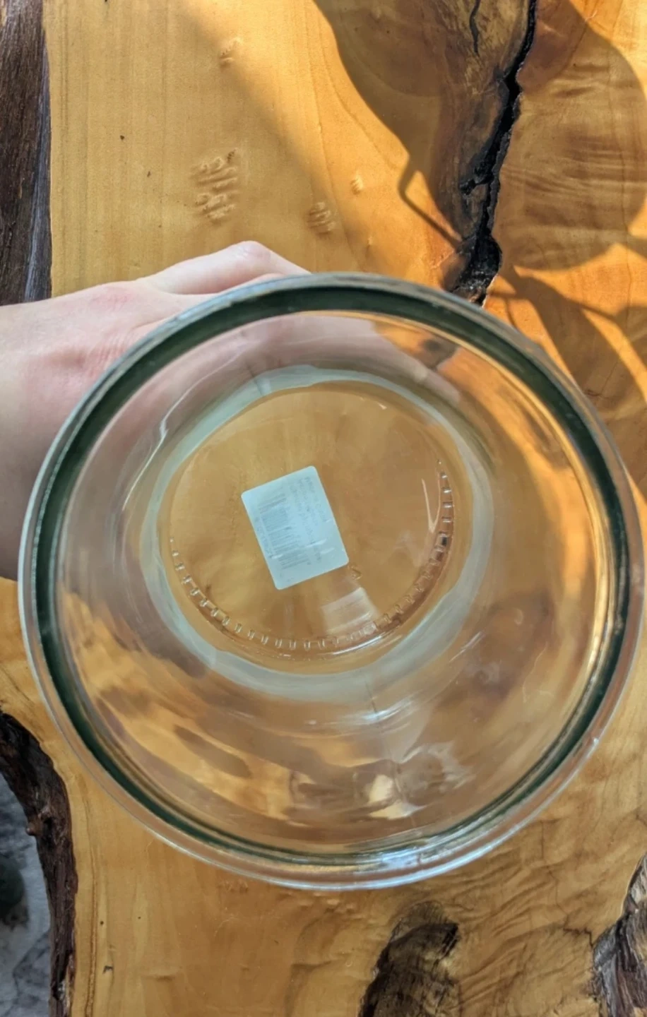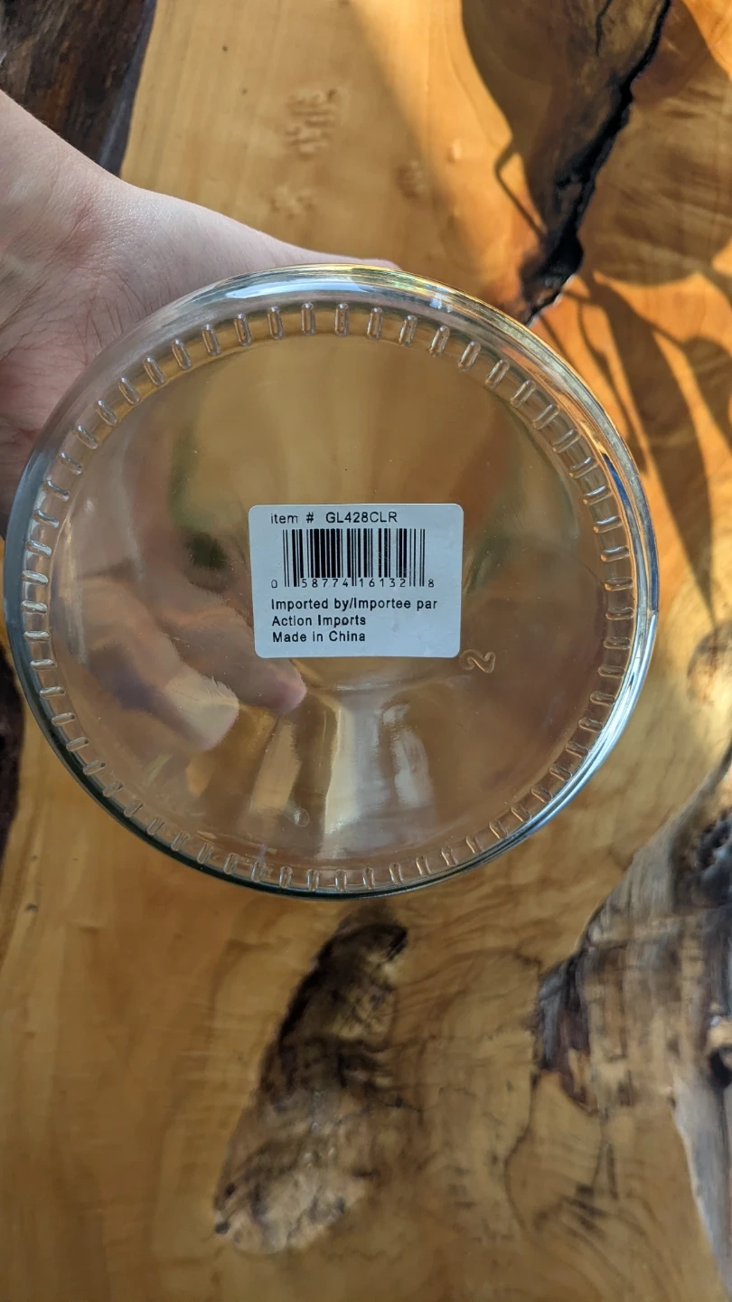 This glass vase is 7.75 inches high, the mouth is 5 inches wide and has only been used once! It's perfect for displaying flowers, and has no chips or cracks!