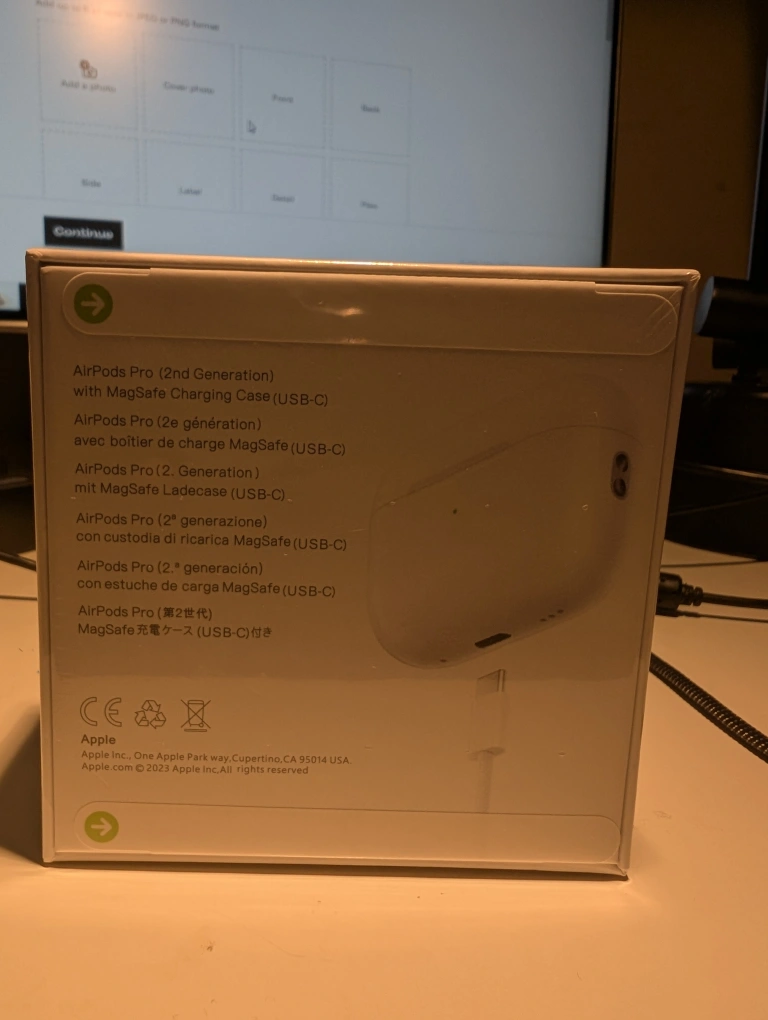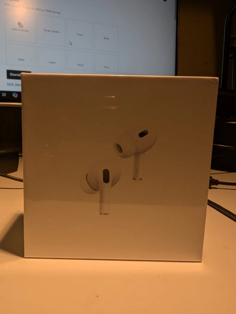 Brand new, unopened AirPods Pro (2nd Generation) in box. Includes MagSafe charging case and USB-C cable. Sealed packaging.