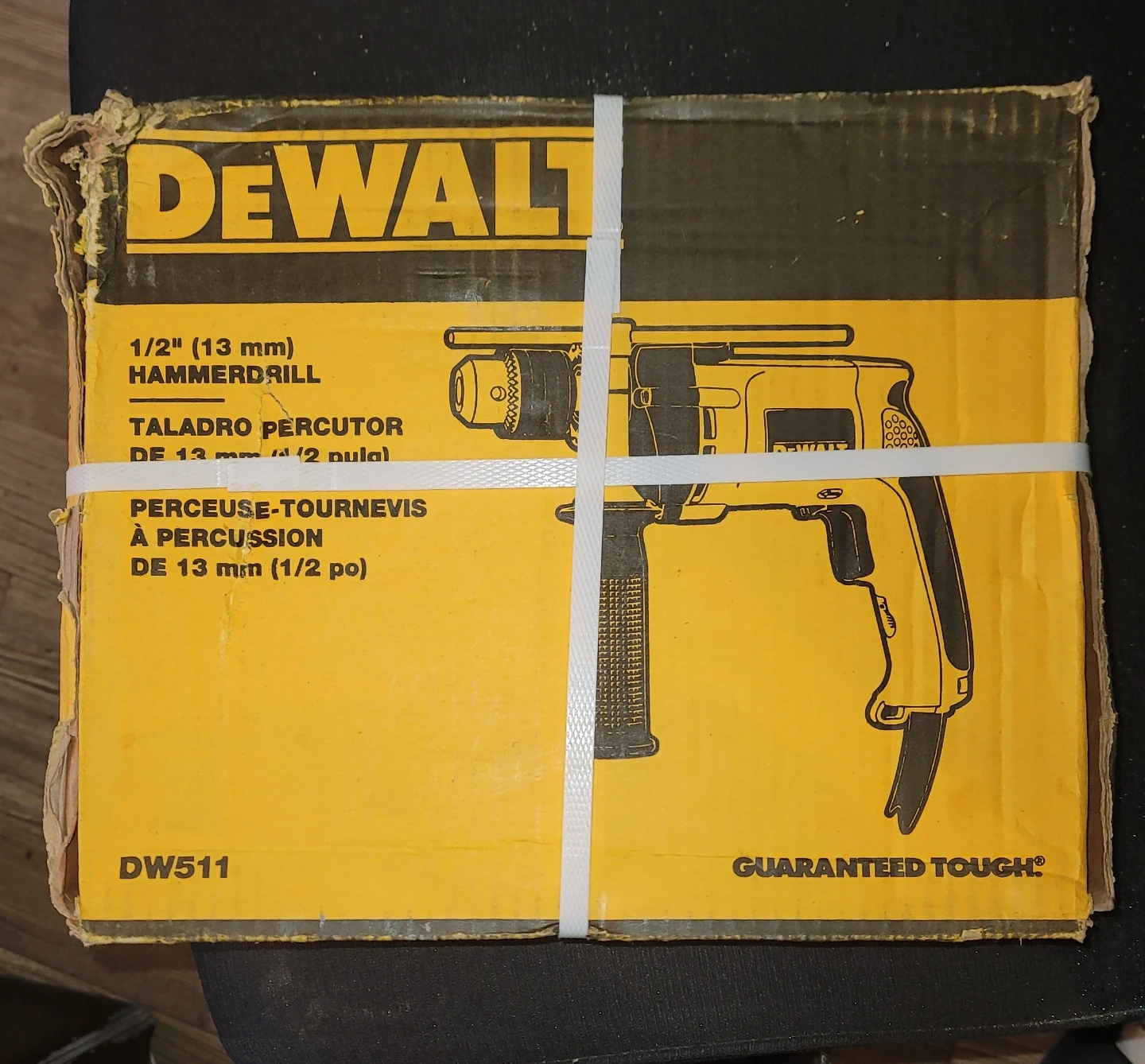 This is a DEWALT 1/2" (13 mm) hammer drill, model DW511. It's a corded electric tool for drilling into masonry and concrete. Used for construction and renovation projects.