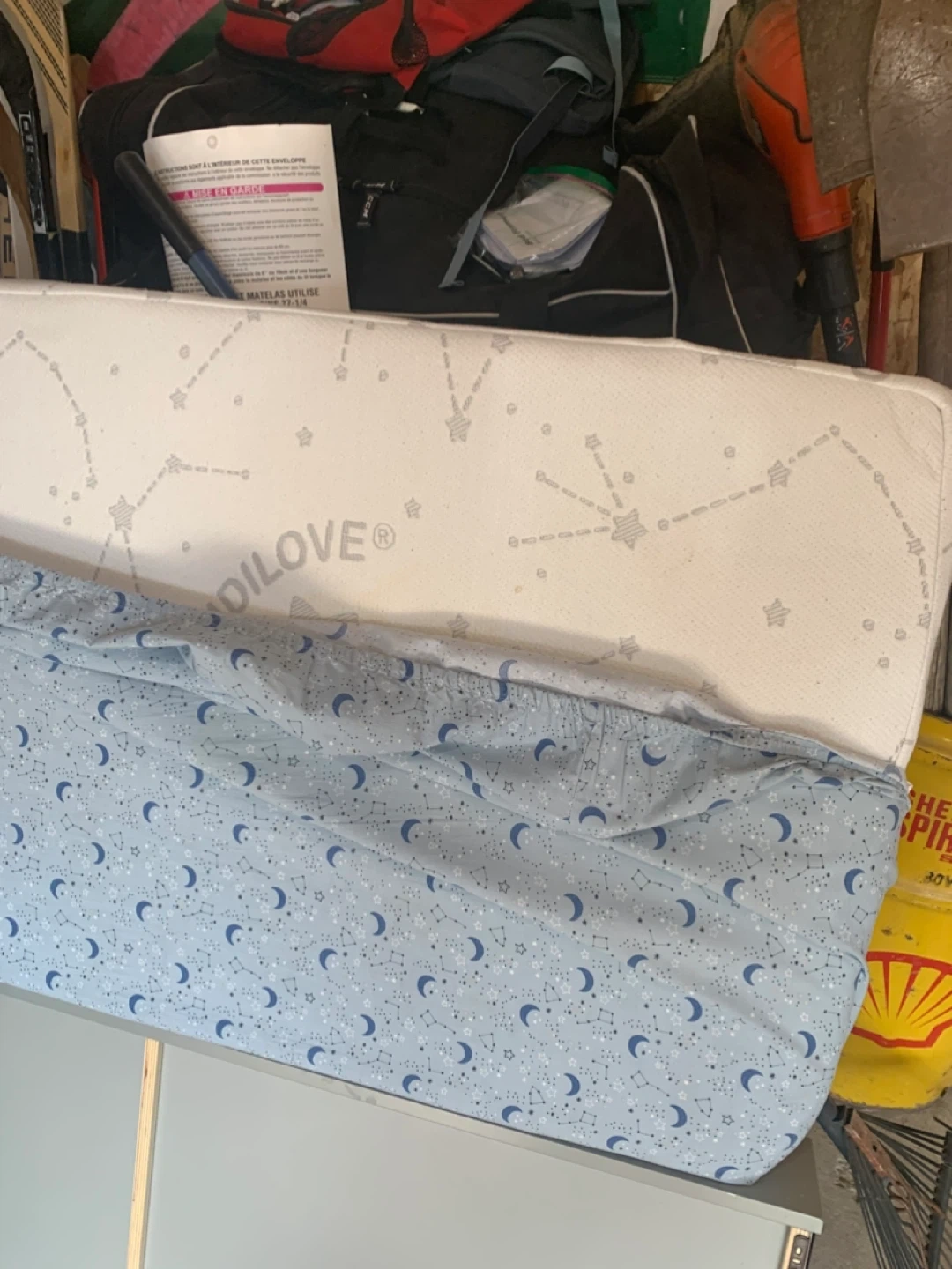 This is a Graco Solano 4-in-1 convertible crib with a built-in drawer. It's a grey crib that can be converted into different bed types. All hardware is included and taped to the side. Crib Matress also available