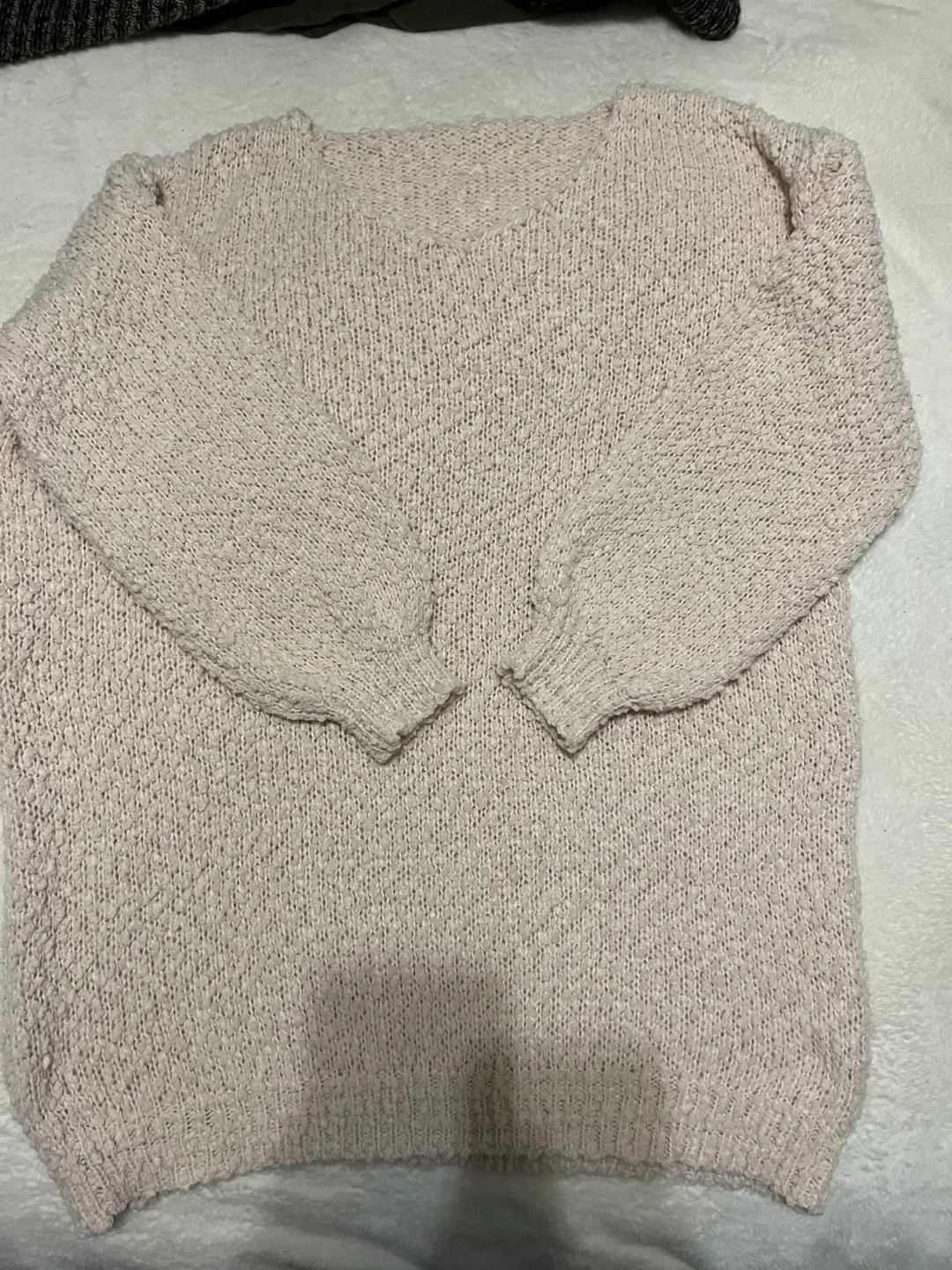 Long bouclay cream v neck
