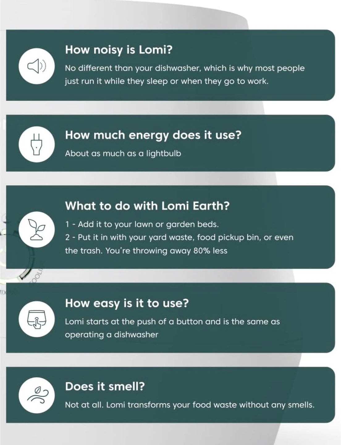 Reduce Your Carbon Footprint : Compared to disposing of your waste in a landfill, using Lomi can reduce your carbon footprint by up to 127%. We food cycle our food waste into plant food.