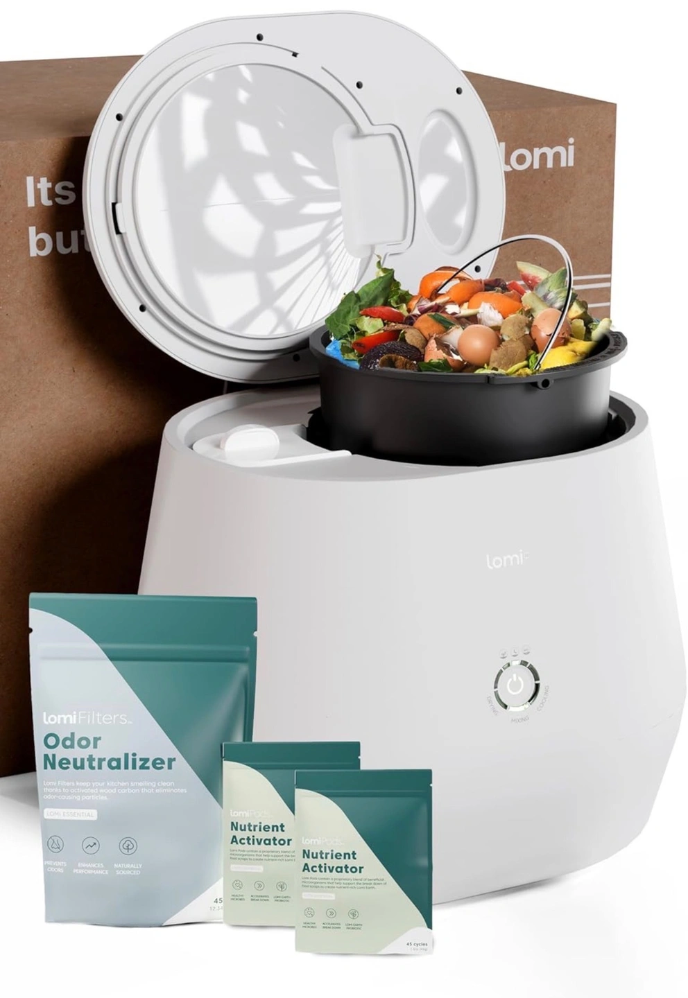 Lomi World's First Smart Waste™ Electric Kitchen Composter | Turn Waste into Natural Fertilizer with a Single Button | Odor Free | 3L Bucket (Bundle)
