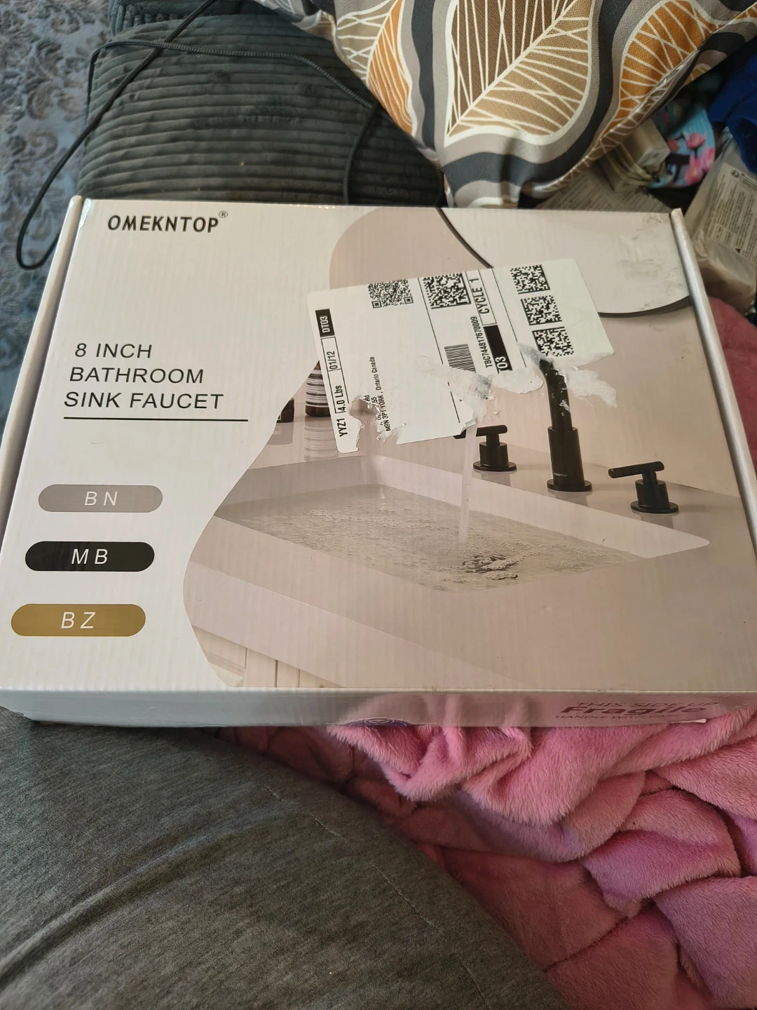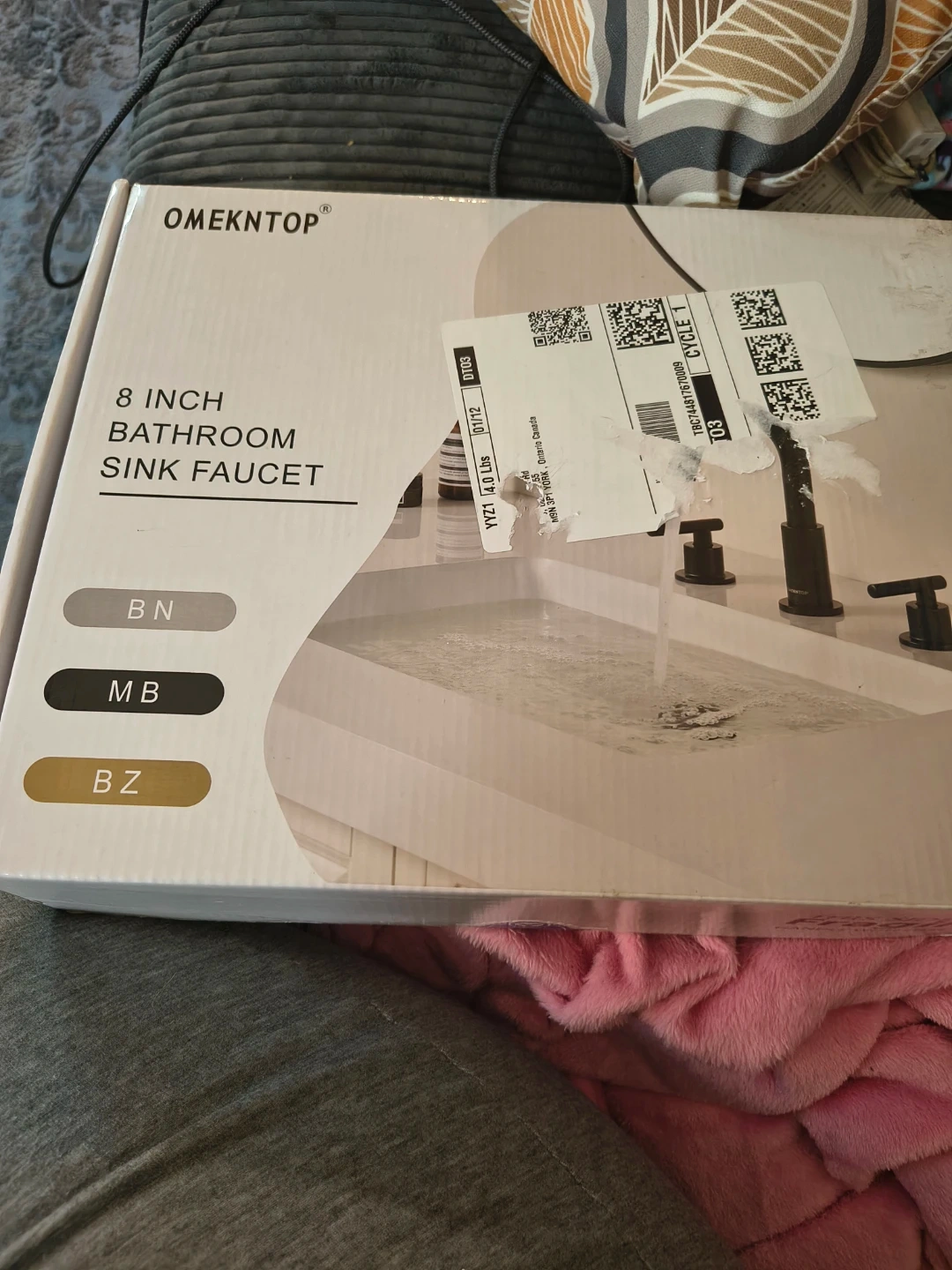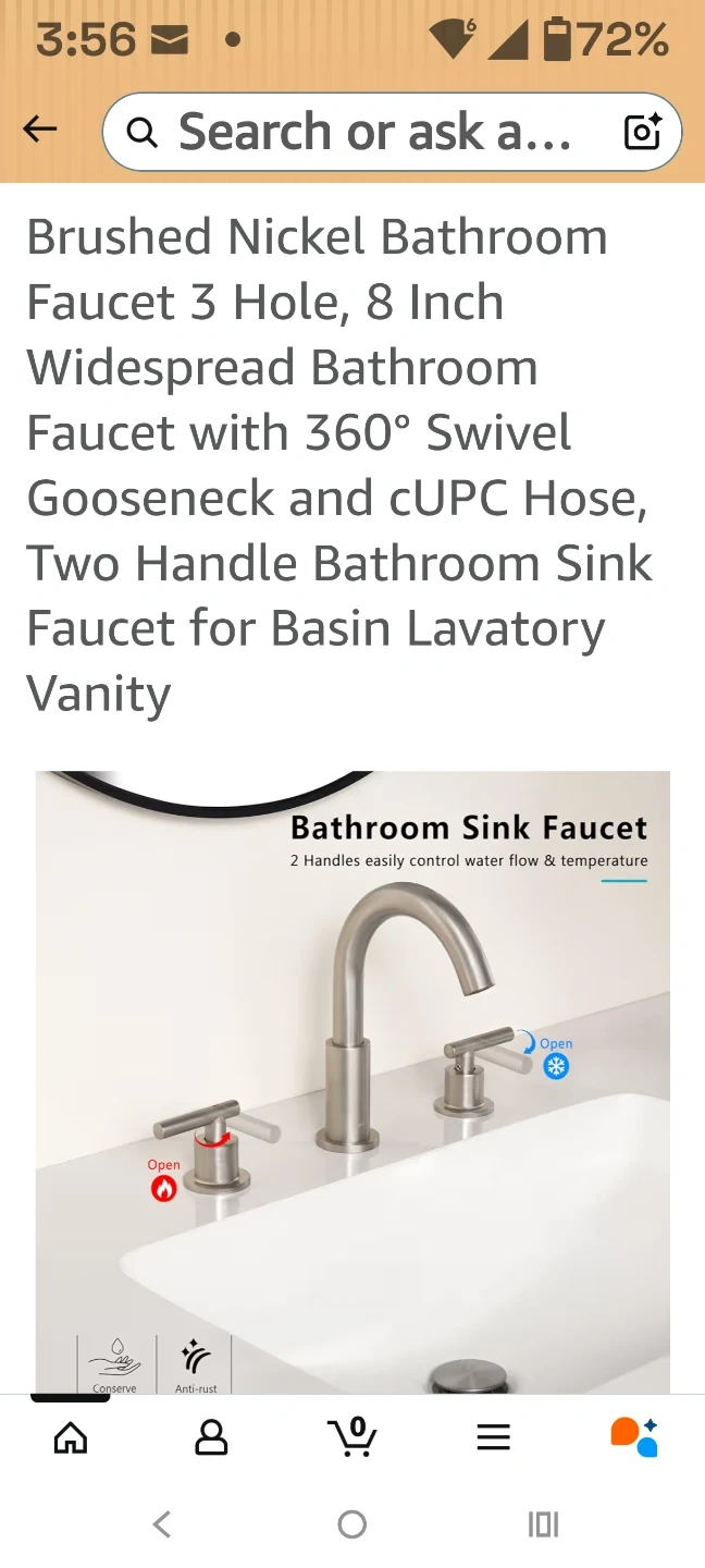 This is an 8-inch widespread bathroom sink faucet. It's a 3-hole, two-handle faucet with a 360-degree swivel gooseneck. It includes a cUPC hose. Brand new, sealed in box.