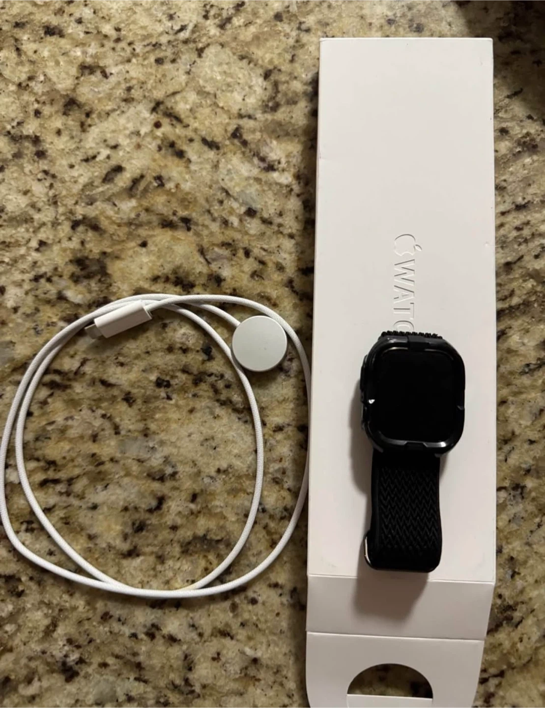 • Includes black strap (aftermarket, original Apple band not included)