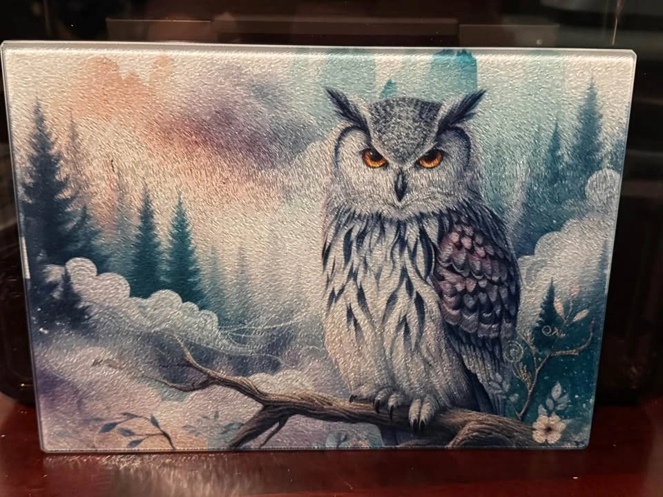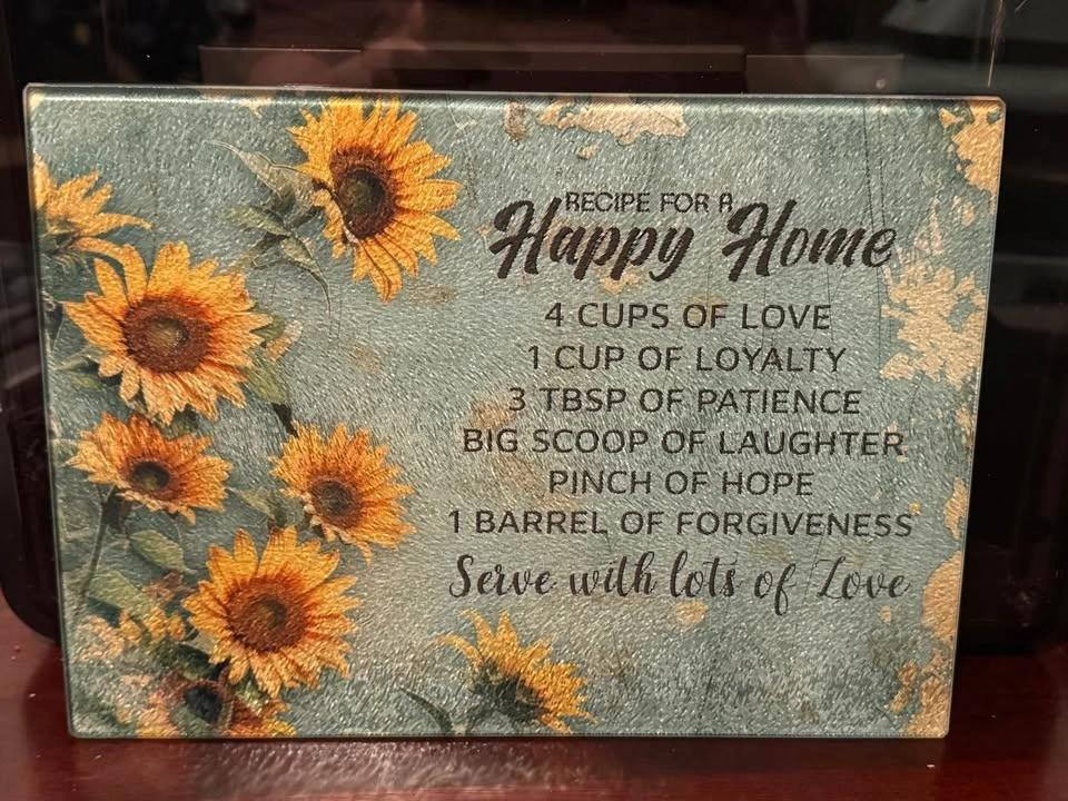 Currently taking orders for custom glass cutting boards. 8x11 in size. Choose from one of our ready to go (photos shown) or ask for something custom. $25 each.