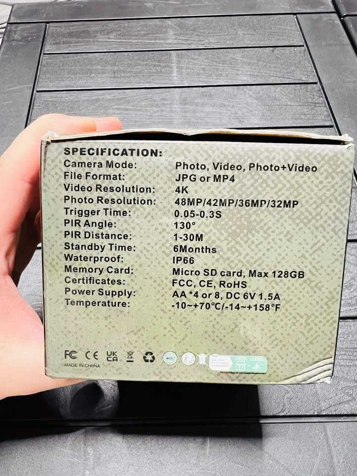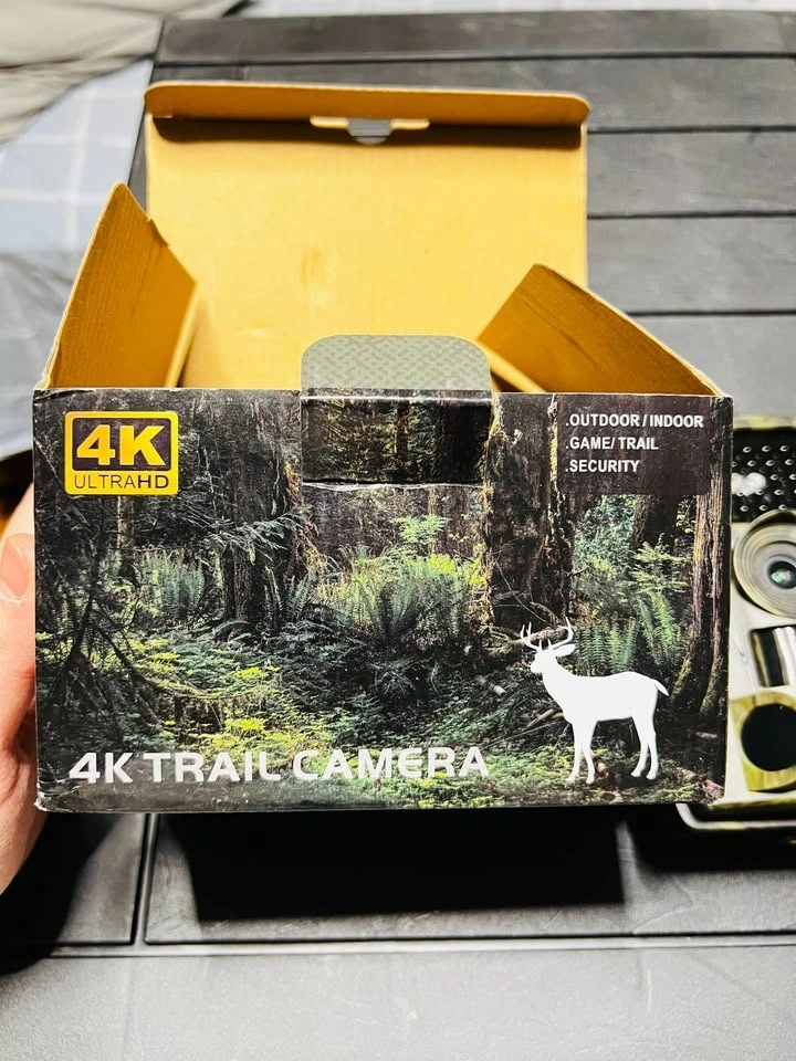 Awesome 4K trail camera with crisp 4K video and high-res photos up to 48MP. Great for outdoor, game, trail, or security use. It's waterproof with an IP66 rating and has a standby time of up to 6 months. Takes micro SD cards up to 128GB and runs on AA batteries. Everything included in the box.