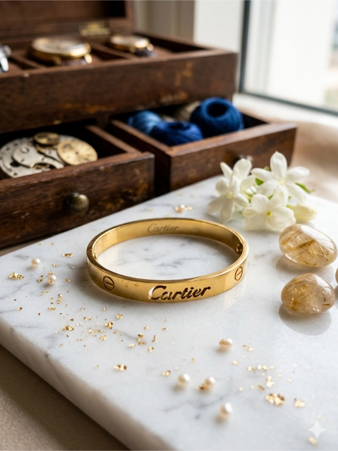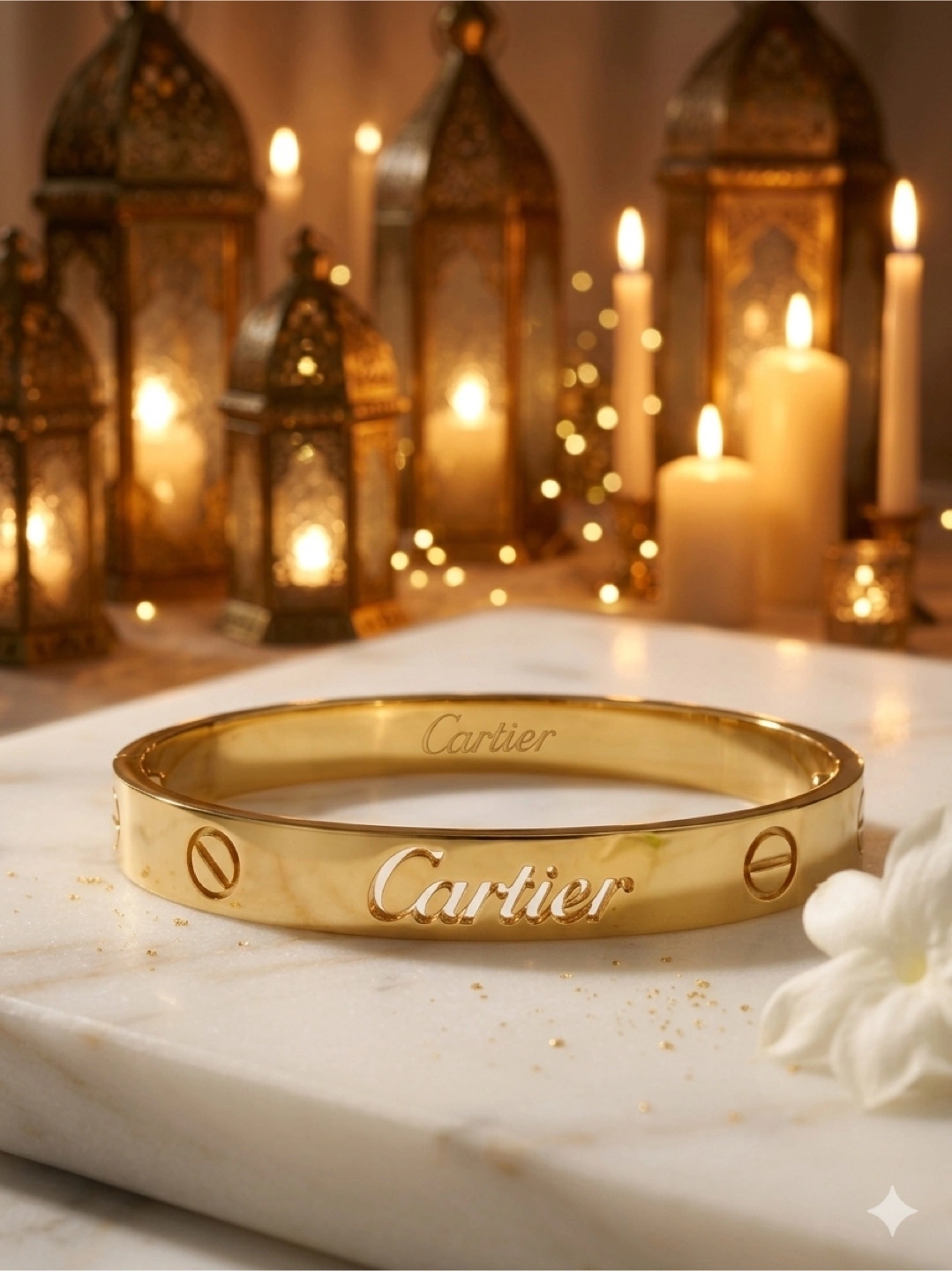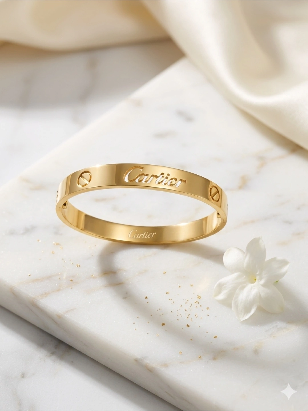 Authentic gold plated Love bracelet. This iconic piece features the signature screw motif and designer engraving. It's a classic accessory for any jewellery collection.