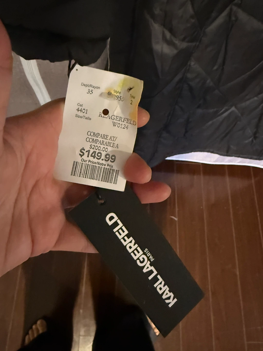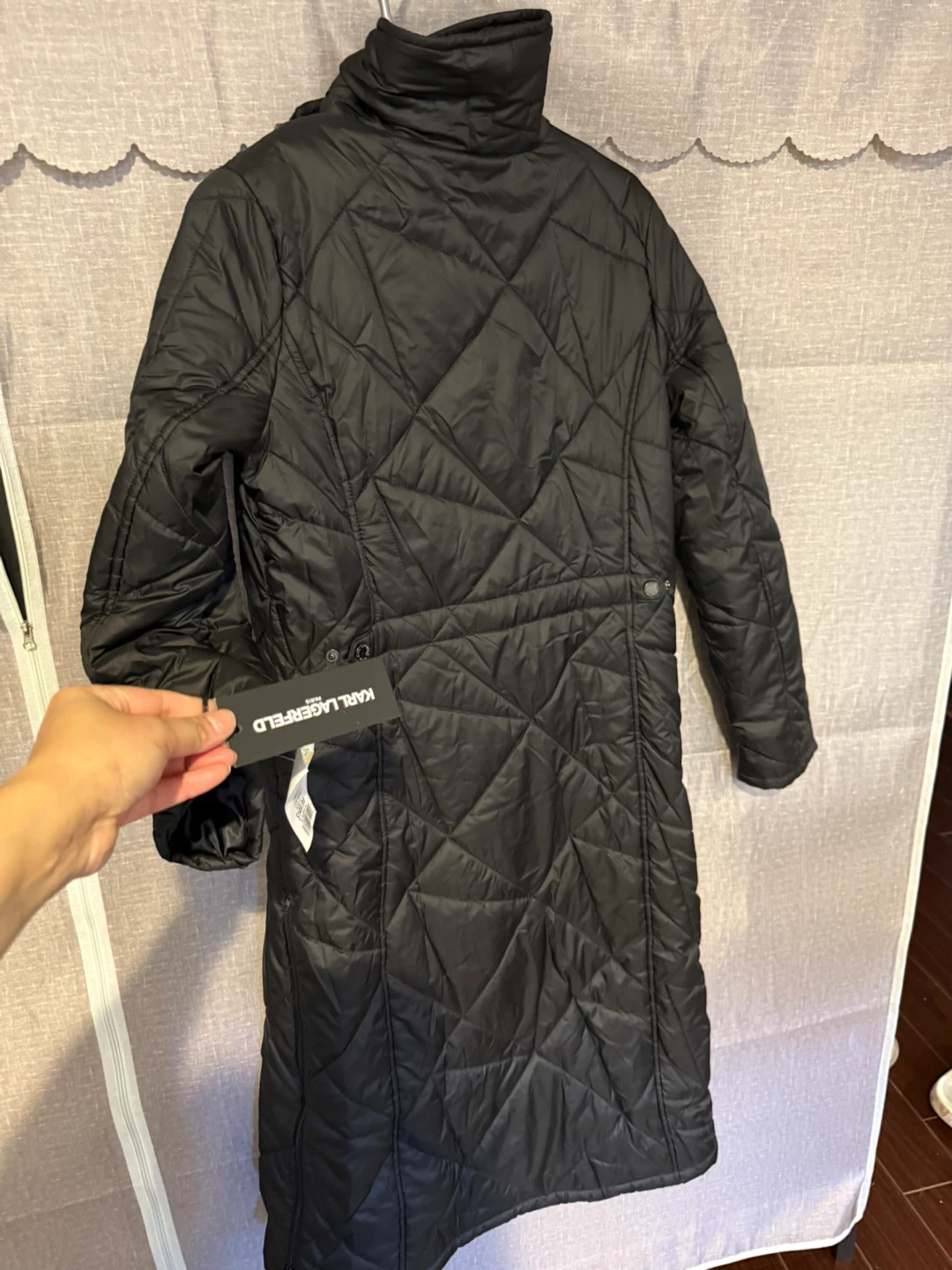 Selling a Karl Lagerfeld black quilted coat in size 35. It's in great condition and originally retailed for $149.99!