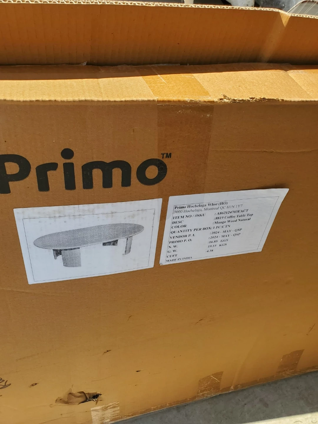 Oval coffee table Top. Light wood finish. made of premium quality mango wood BRAND NEW IN BOX condition.