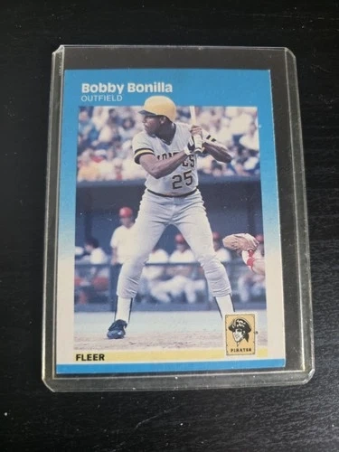 This is an original 1987 Fleer Bobby Bonilla rookie card, featuring Bonilla with the Pittsburgh Pirates. This is his true rookie card, a key piece for collectors of 1980s baseball and Pirates stars. The card is raw and ungraded, stored in a protective holder. Please review all photos carefully to assess centering, corners, edges, and surface condition. Any visible wear may be from age, handling, or the holder itself. Year: 1987 Brand: Fleer Card Number: #522 Player: Bobby Bonilla Team: Pittsburgh Pirates Rookie Card: Yes (RC) Condition: Raw / Ungraded Great addition for Pirates fans, rookie card collectors, or anyone building a classic late-80s baseball collection.