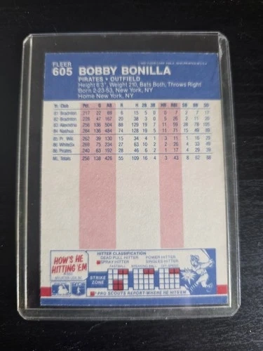 1987 Fleer #522 Bobby Bonilla Rookie Card RC – Pittsburgh Pirate