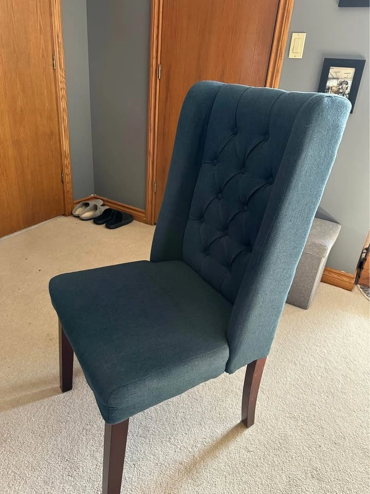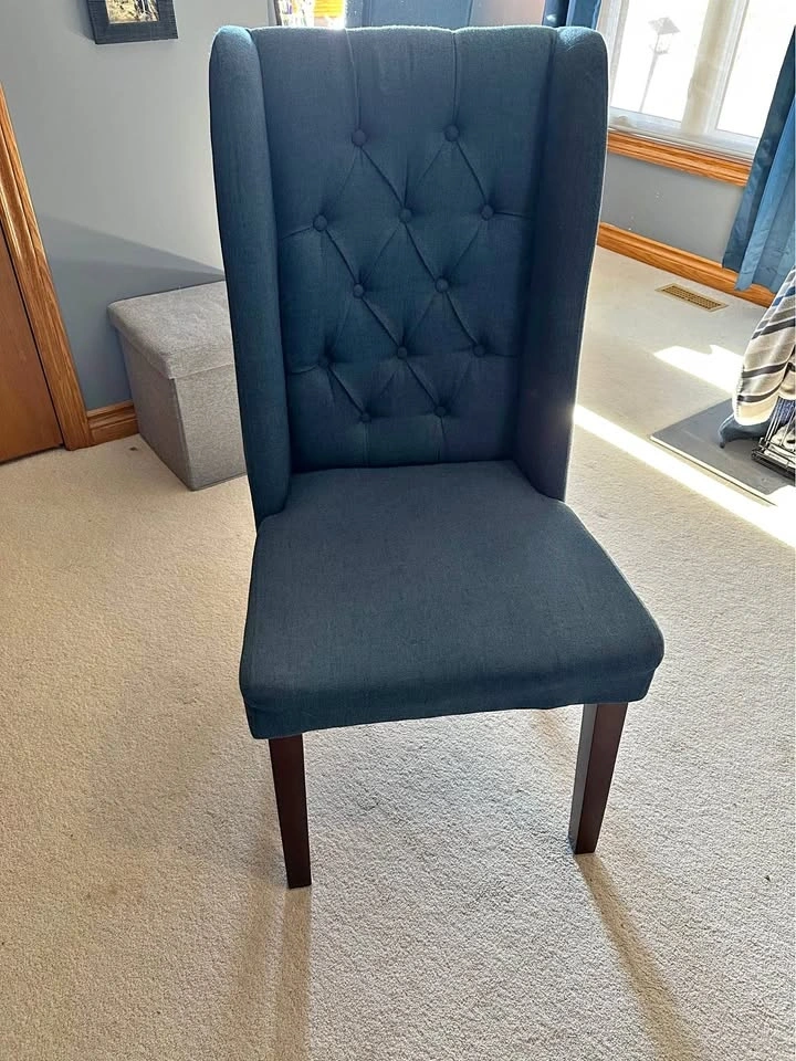Buy & SellBlue Tufted Dining Chair (High Back) – Modern / Farmhouse StyleBlue Tufted Dining Chair (High Back) – Modern / Farmhouse Style$20Obo in great condition.WHERE TO MEETCheck LocationView MapSELLEROlivia CooperSpringfield100 reviews0 chats·0 favorites·4 viewsSEND CHAT TO SELLERHi Olivia Cooper! I’m interested in your listing.Hi Olivia Cooper! I’m interested in your listing.Get the Karrot app to chatSign In to chat