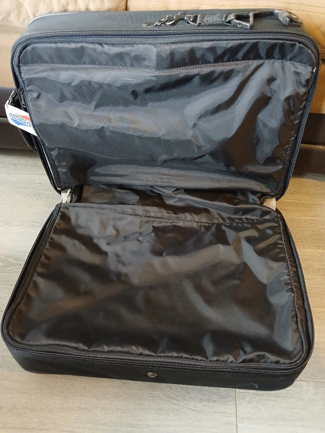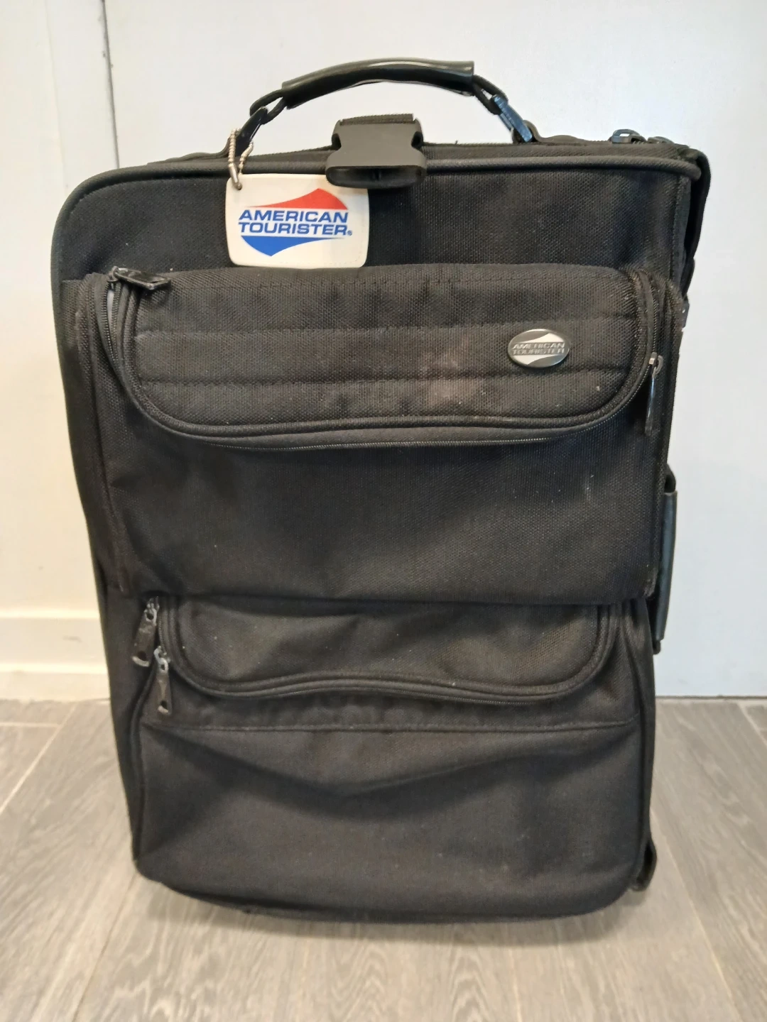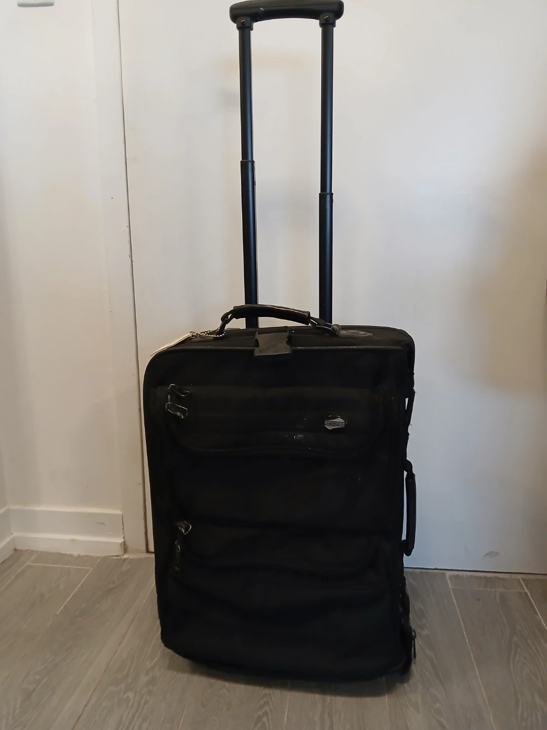 American Tourister Black Rolling Suitcase. It's available.