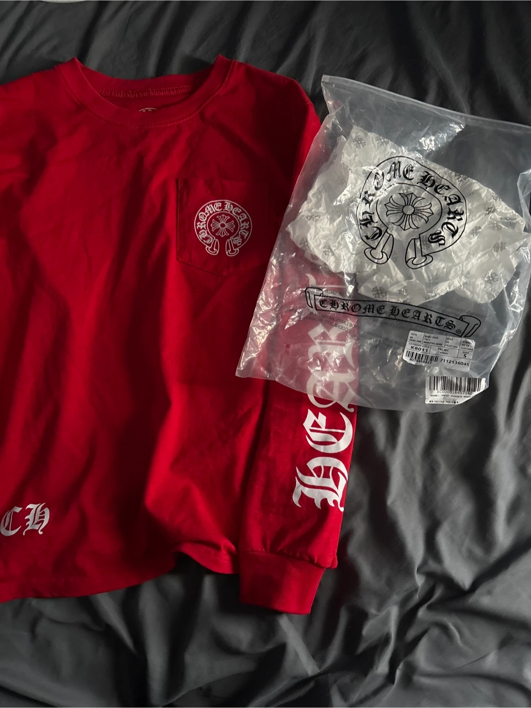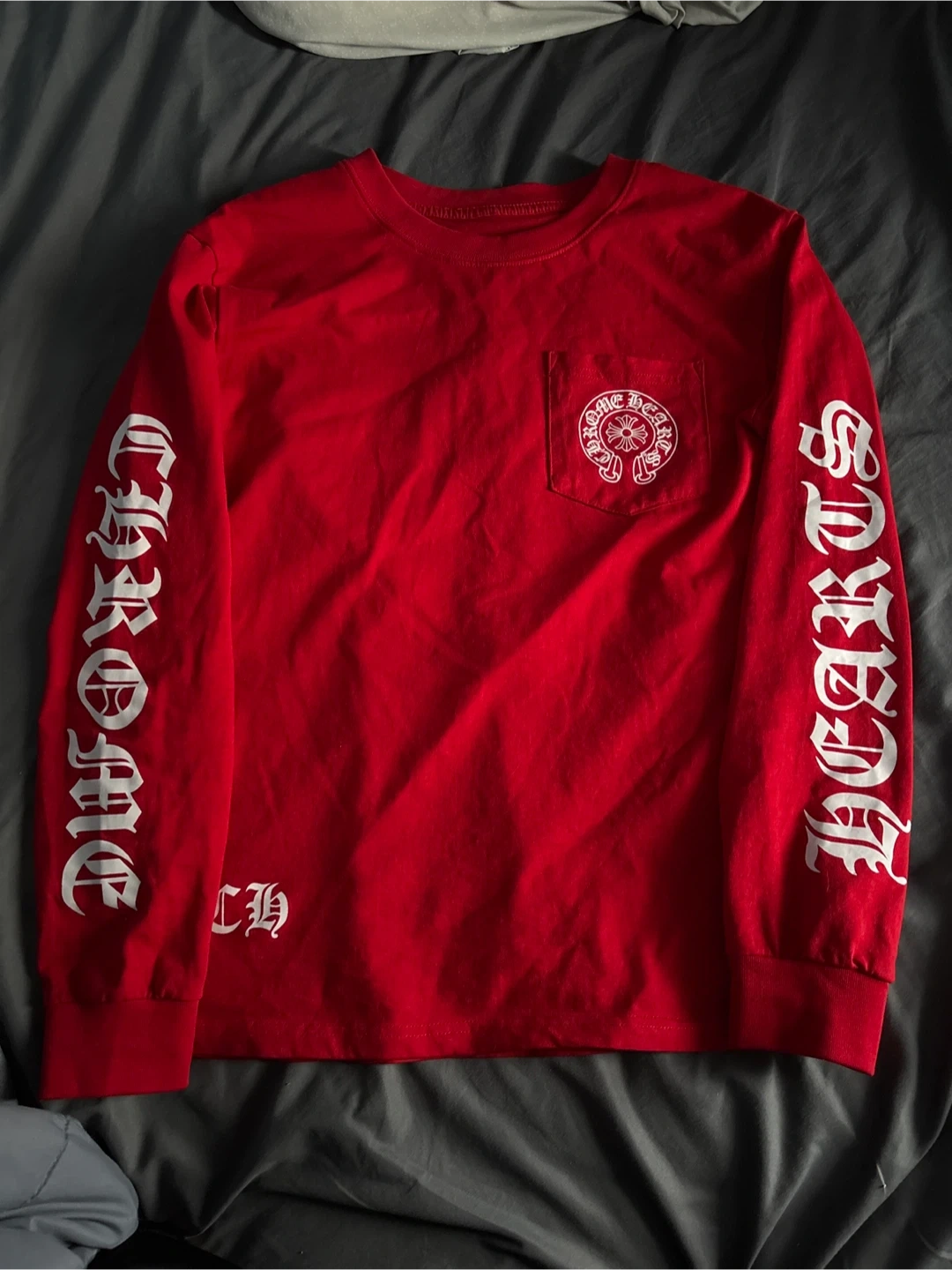 This is a red long sleeve t-shirt from Chrome Hearts. It's made of 100% cotton.