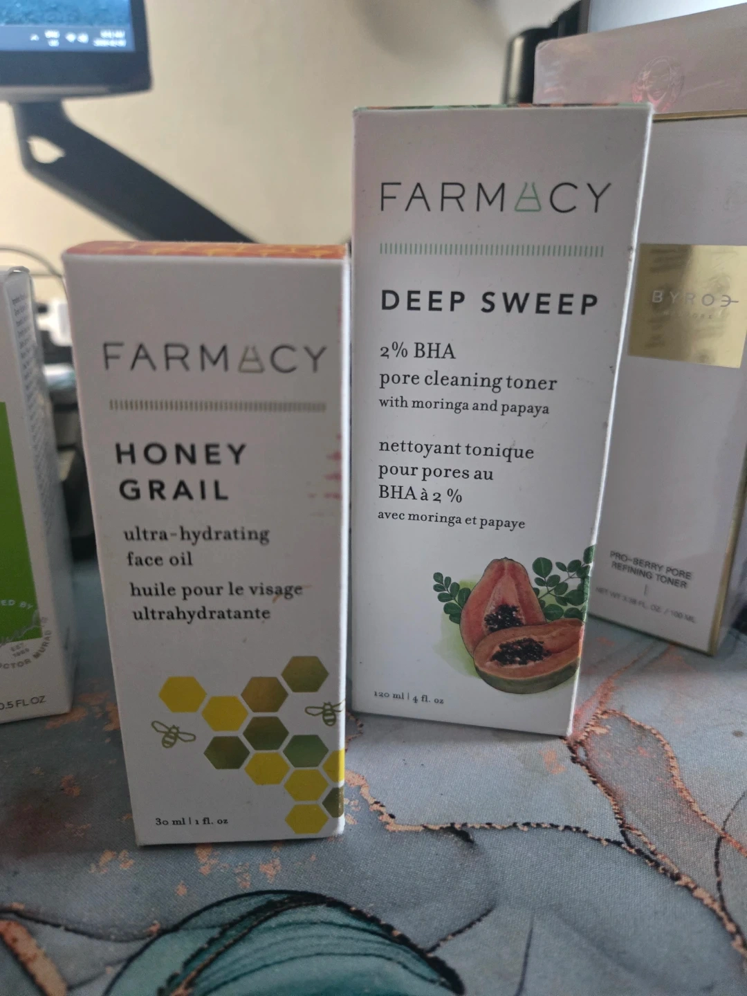 Farmacy Honey Grail ultra-hydrating face oil. It's a 30ml bottle. Farmacy Deep Sweep 2% BHA pore cleaning toner. This toner is 120ml and contains moringa and papaya.