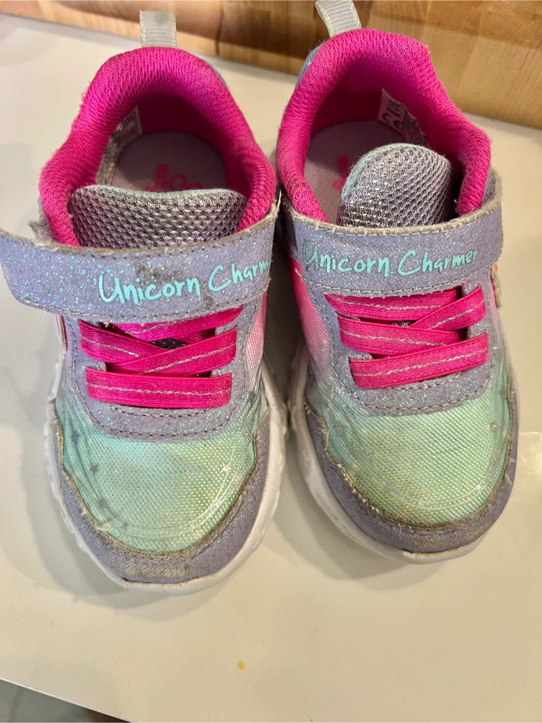 These Skechers light-up sneakers feature a fun unicorn design and were only worn by my daughter for a few months before she outgrew them! They are in good, clean condition (toddler size 6).