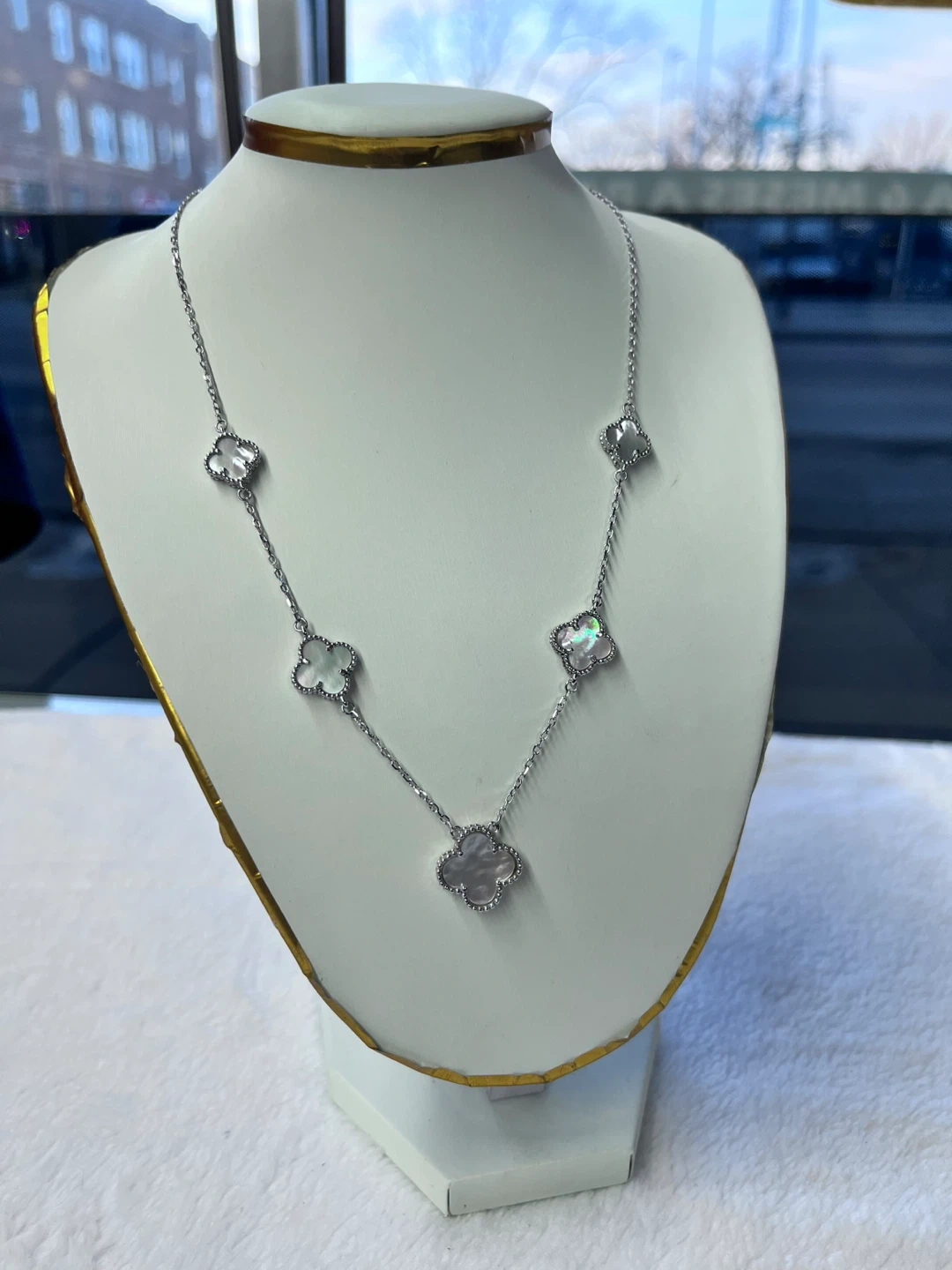 Silver 9.25 Clover Necklace with Mother of Pearl