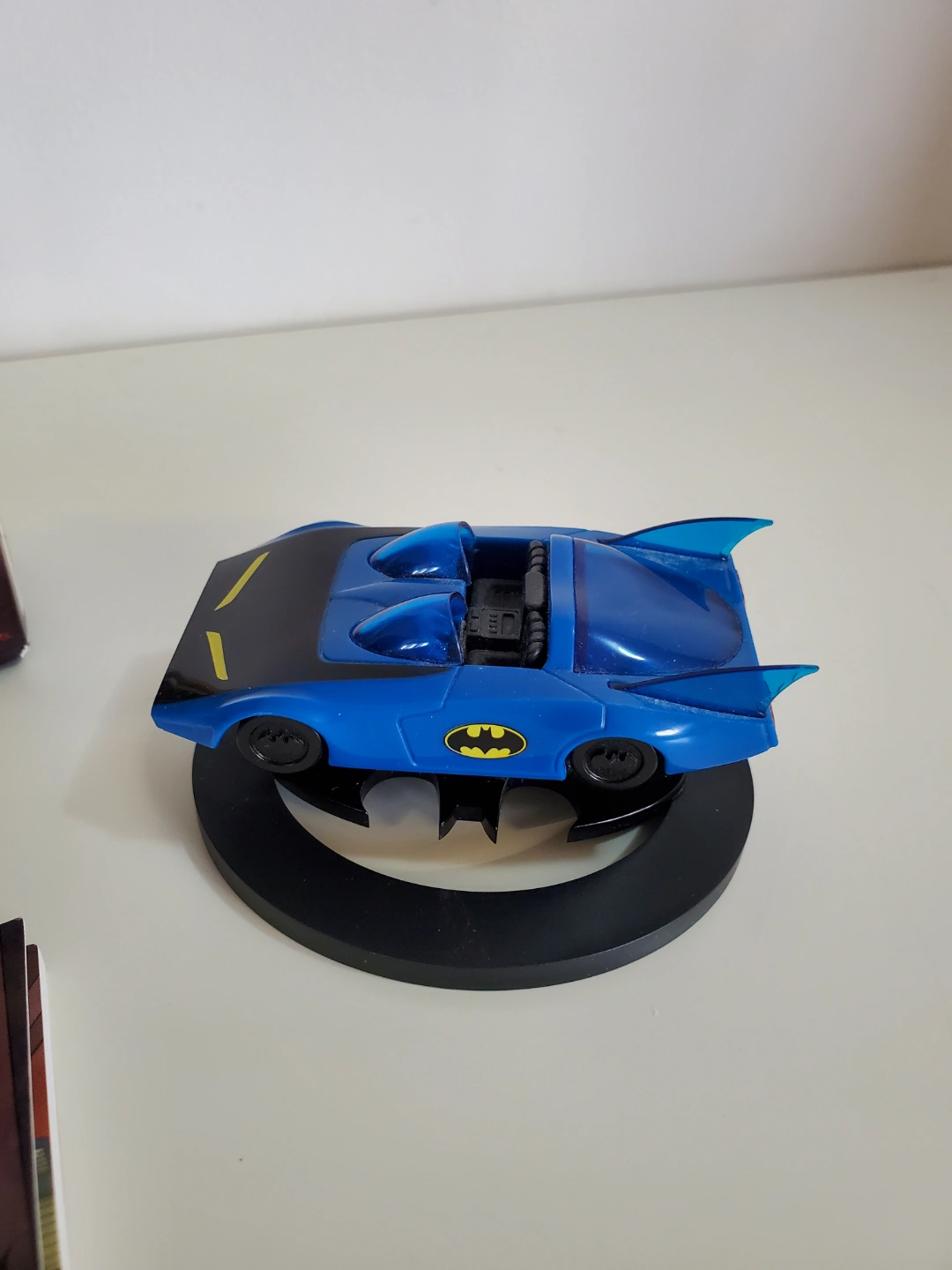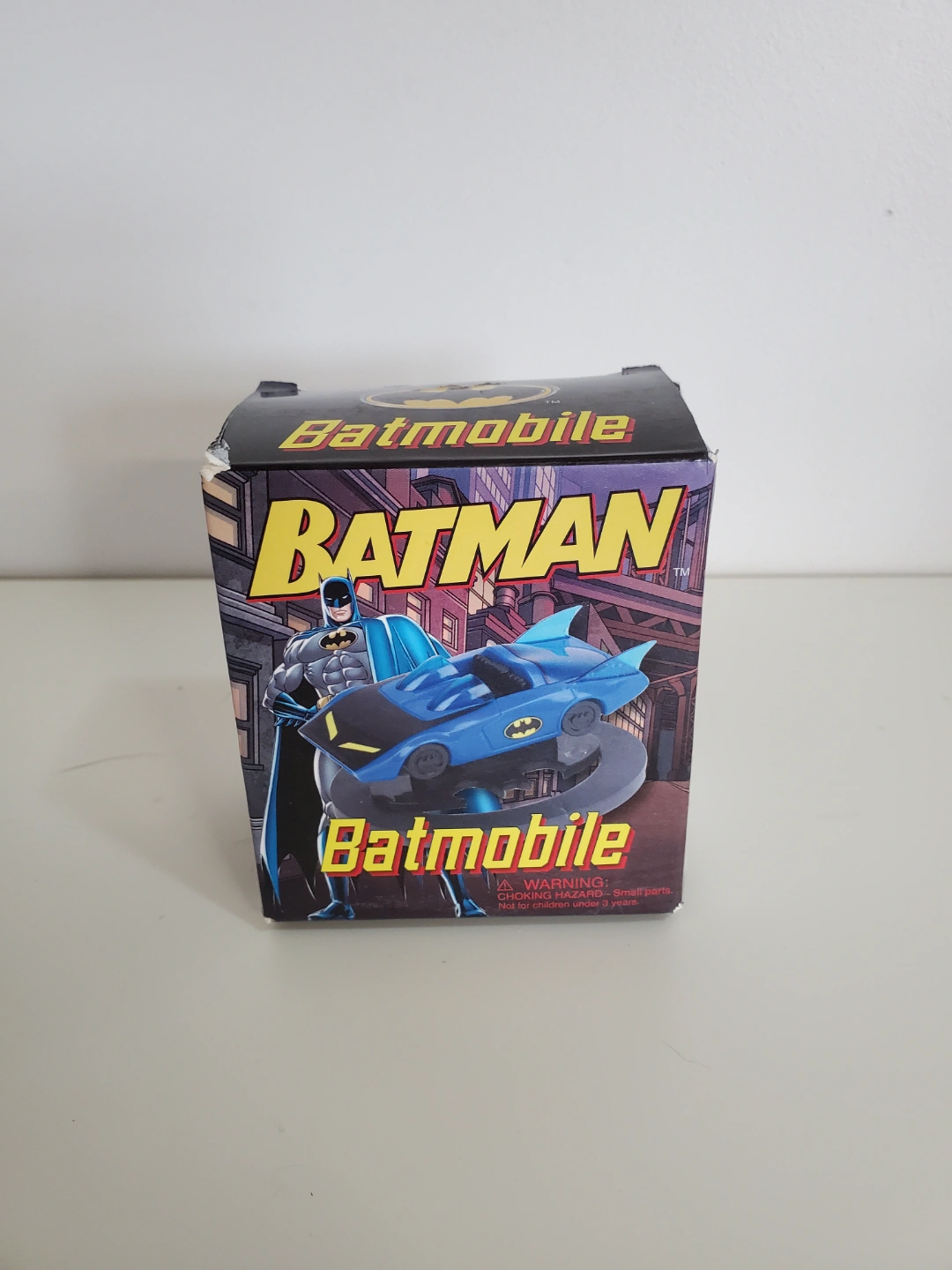 Rare collectible Batman Batmobile Mega Mini Kit. Includes a detailed miniature Batmobile model on a display stand and a companion book. Box shows some minor wear.