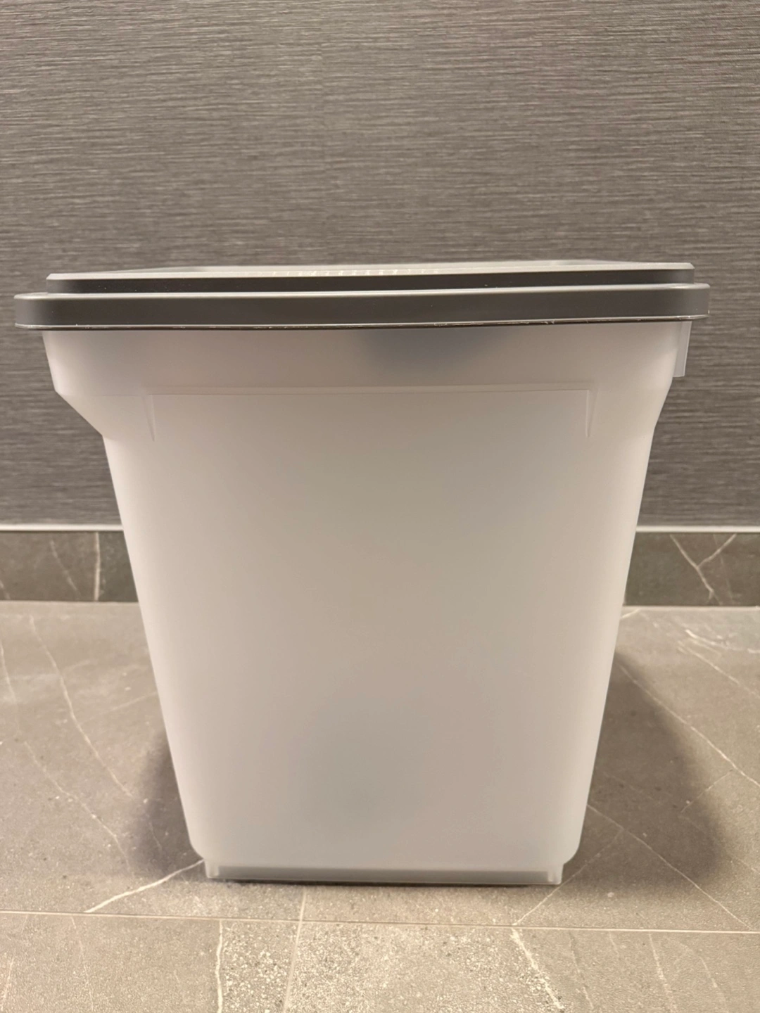 Clear with a gray lid and black accents