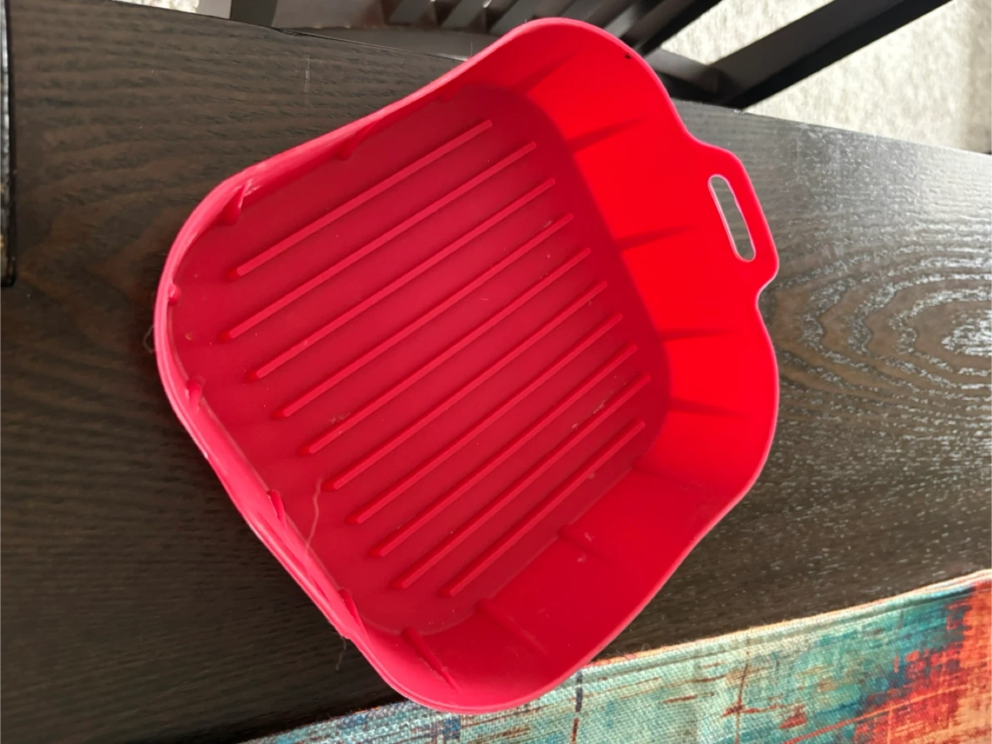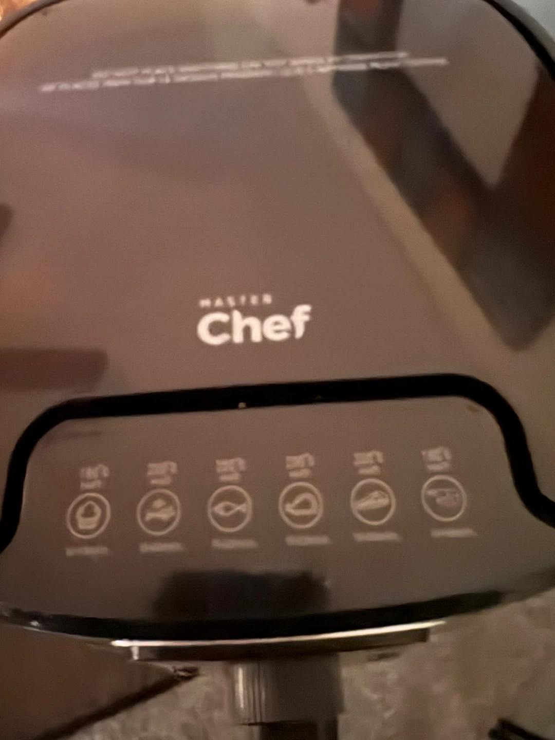 Master Chef air fryer in black. Comes with a red silicone liner for easy cleanup. Great for making crispy foods quickly!