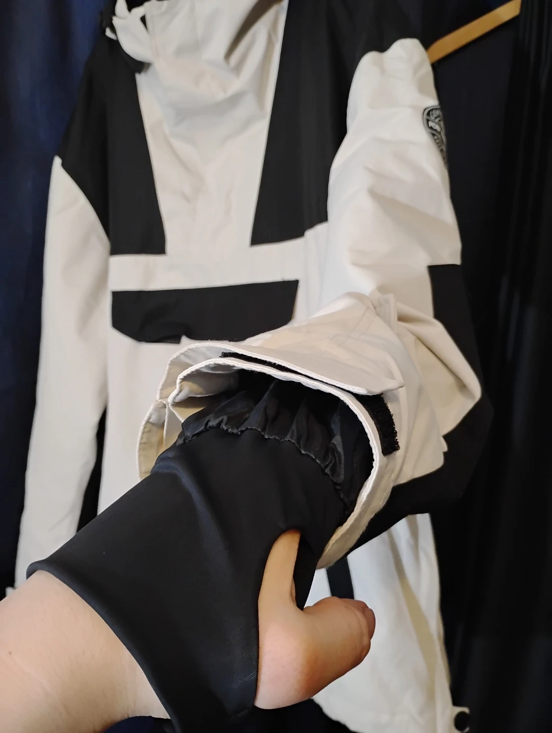 Functional Design: This retro ski jacket is designed with MULTIPLE pockets, including outer zipper pockets, one sleeve pocket, one zipper sleeve pocket, one large visible inner net pocket, and one inner zipper pocket. Features a long - zippered closure, hood, thumb - hole design, Velcro - closure cuffs, a drawstring hem, and a snow - skirt design for enhanced functionality.