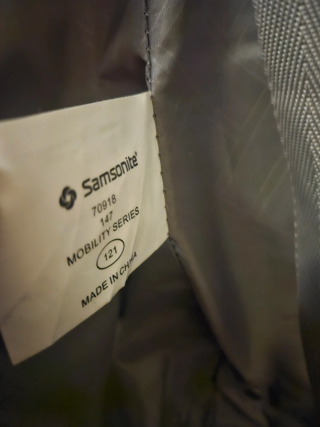 This is a Samsonite Expandable rolling suitcase from the Mobility Series. It's black and has a telescopic handle with 4, 360 wheels for easy transport. The interior is spacious with tie-down straps.